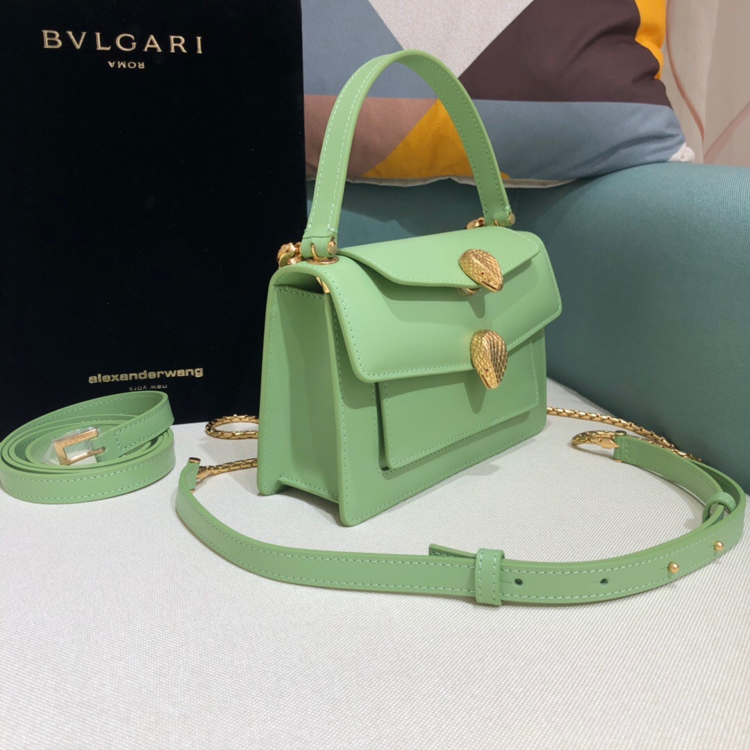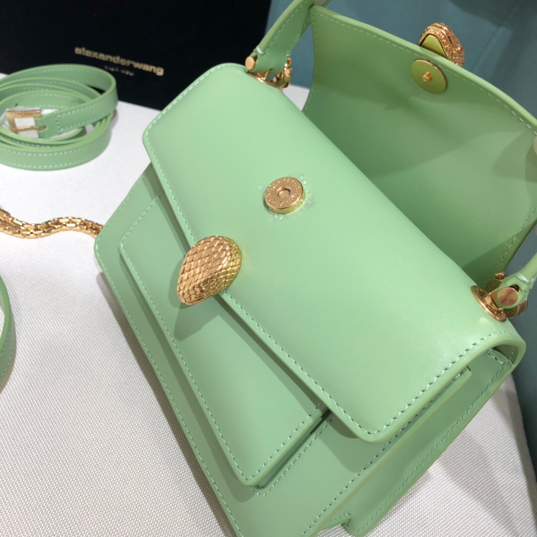 Limited edition with internal tone on tone calf leather tag with “ALEXANDER WANG BVLGARI” logo. This bag features a detachable handle, a removable belt, and a detachable chain and leather strap, for versatile wearability as a top handle and a crossbody. A single gusset and two pockets complete this model.