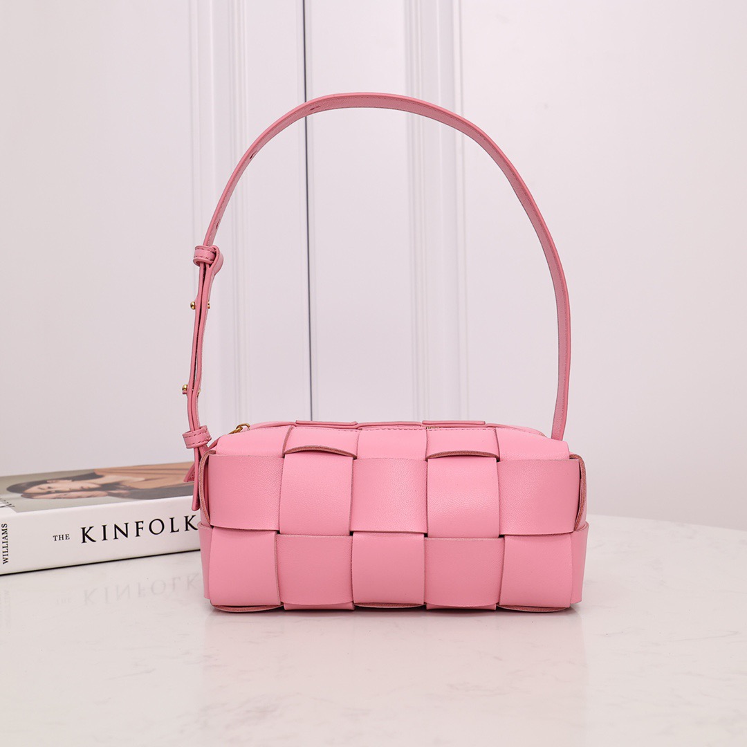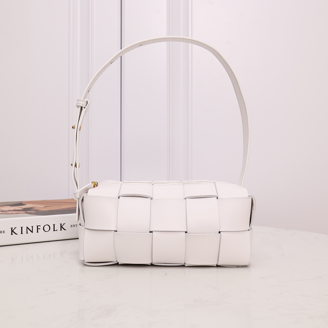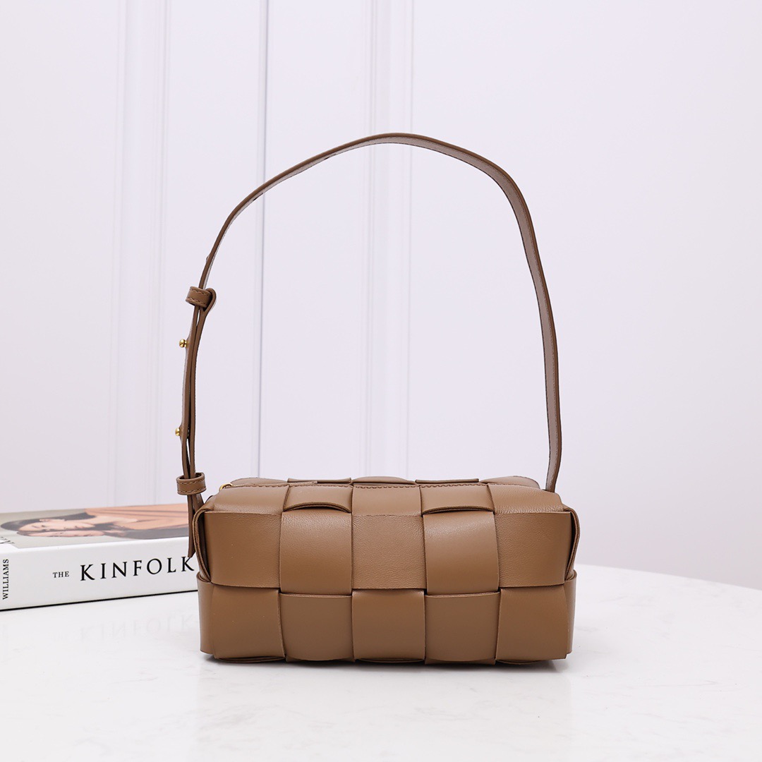 B *ENETA introduces a fresh twist to its highly sophisticated Brick Cassette shoulder bag with the Small version, perfect for accommodating everyday essentials. Crafted from exquisite intrecciato-woven leather and complemented by luxurious golden hardware, this style exudes elegance.