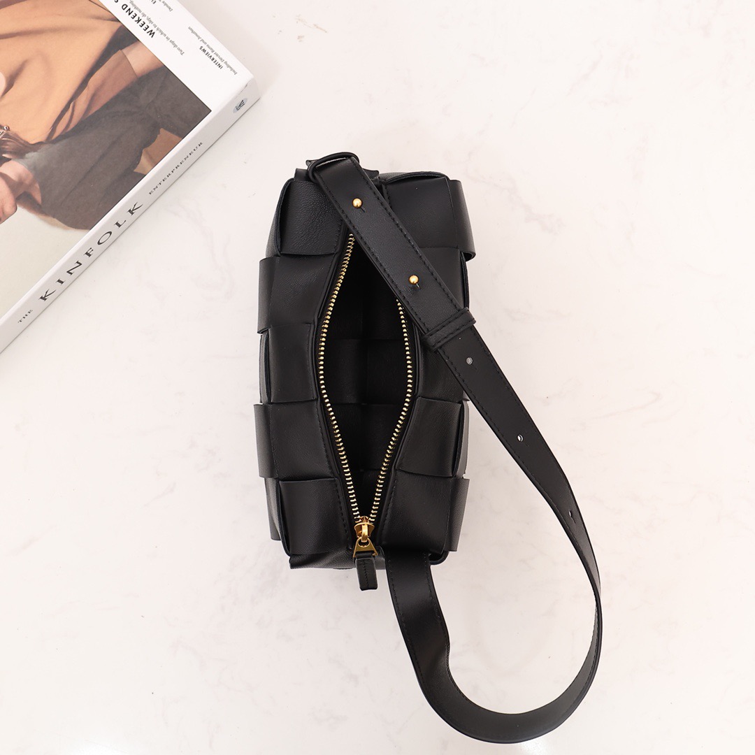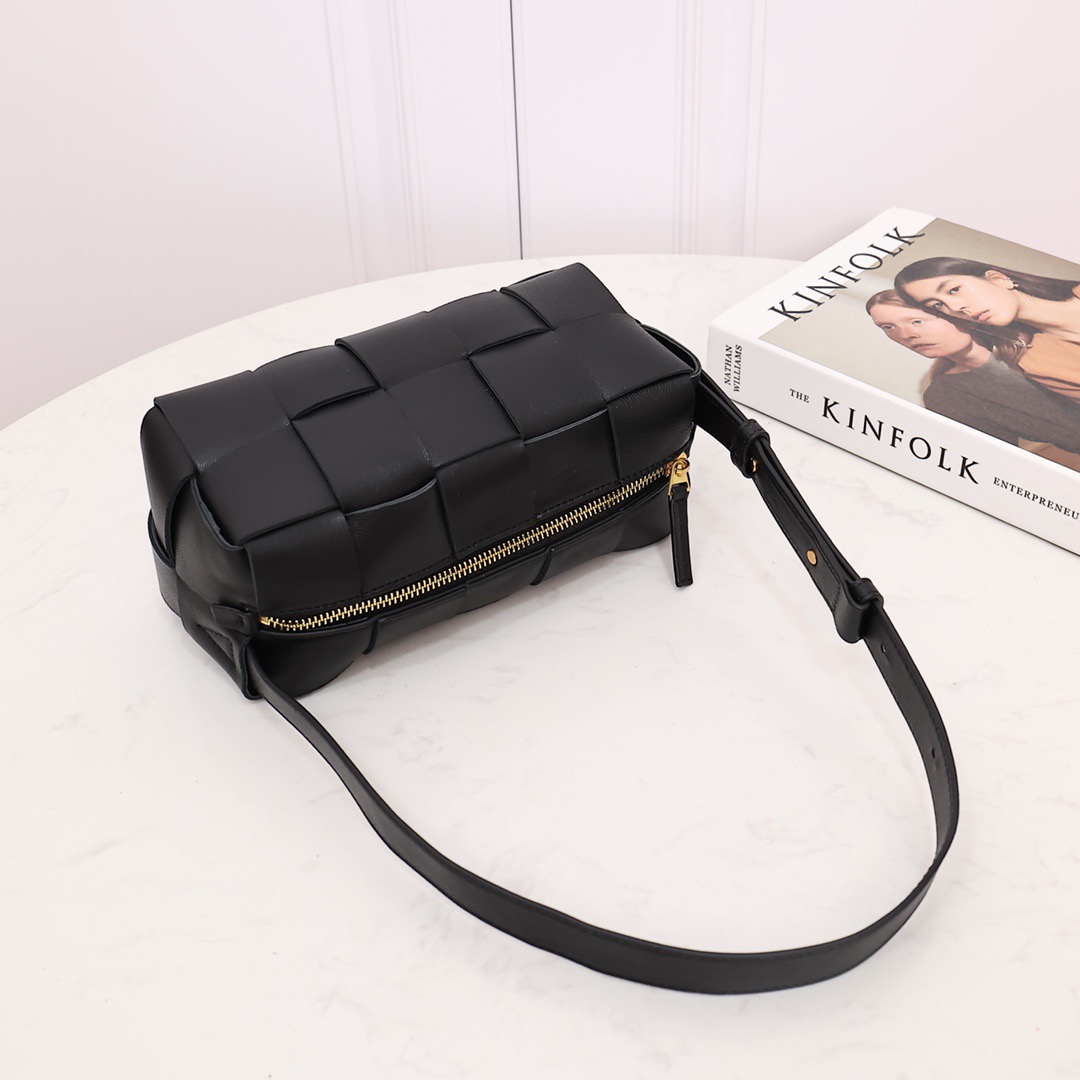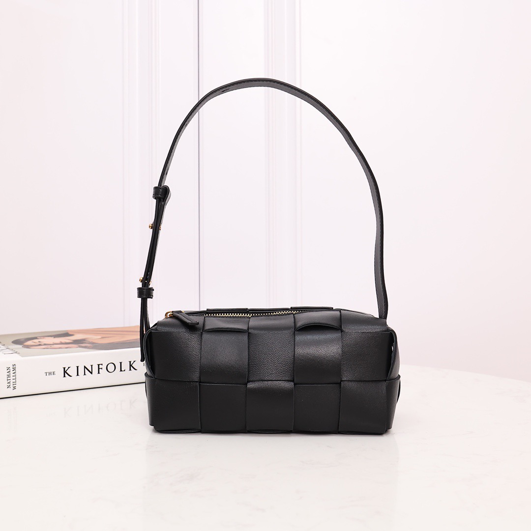 B *ENETA introduces a fresh twist to its highly sophisticated Brick Cassette shoulder bag with the Small version, perfect for accommodating everyday essentials. Crafted from exquisite intrecciato-woven leather and complemented by luxurious golden hardware, this style exudes elegance.