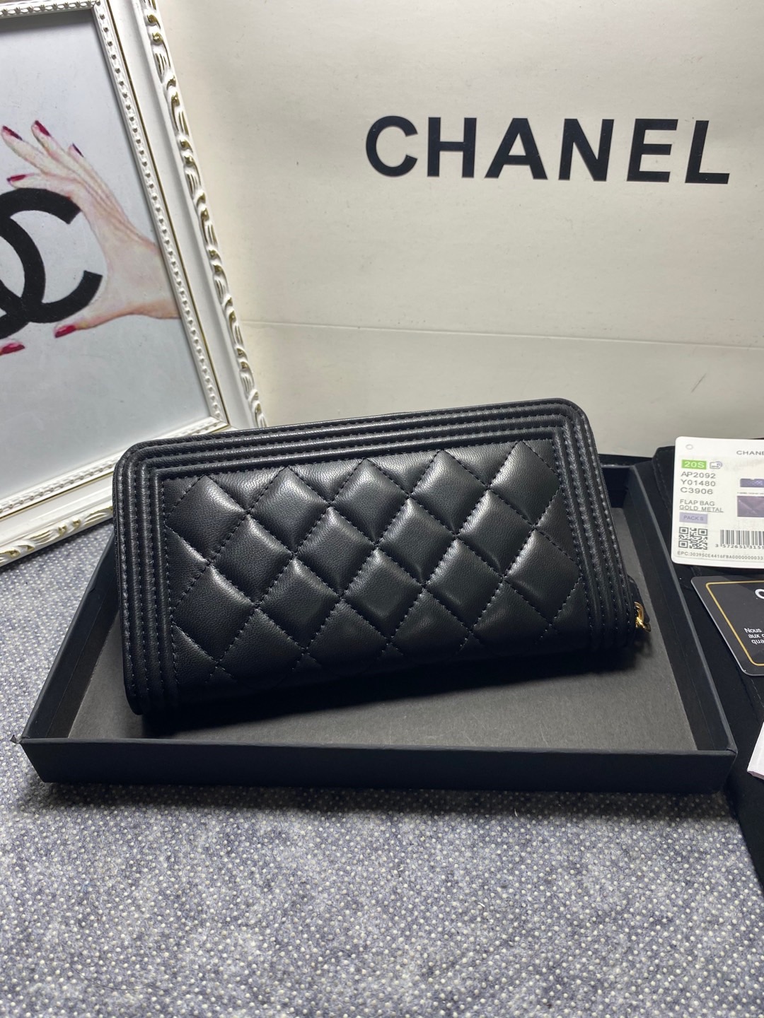 The *anel ‘Boy’ Wallets have consistently gained popularity on par with the Boy *anel Quilted Bags. With its striking similarities to the Boy Bag line, including the quilted pattern with striped edges and the iconic boy clasp, this wallet embodies the essence of the collection. Crafted from durable calfskin, it ensures minimal upkeep and resistance to damage, even when placed in close proximity to keys within your bag. With its versatility and functionality, this wallet proves to be a practical and remarkable choice, capable of securely holding paper money, credit cards, and coins.