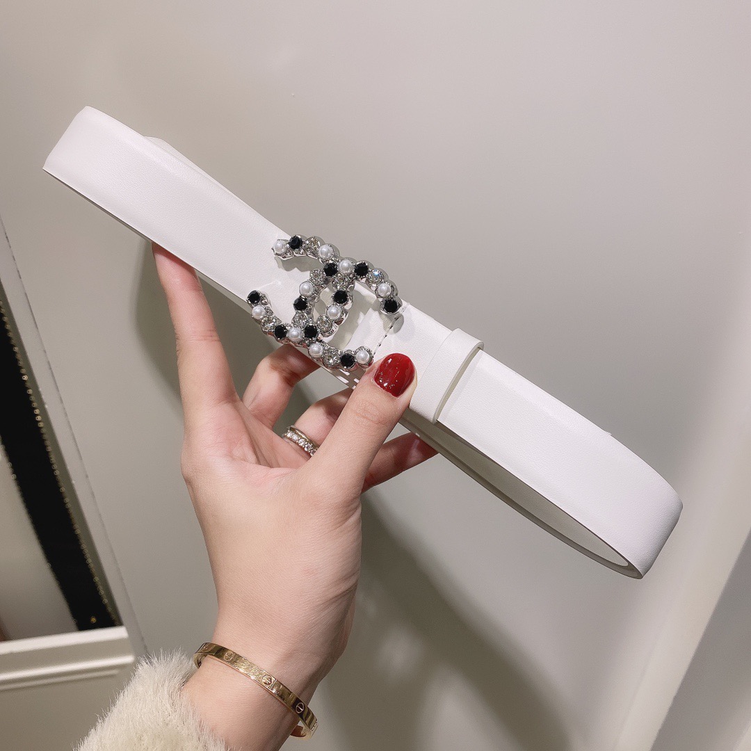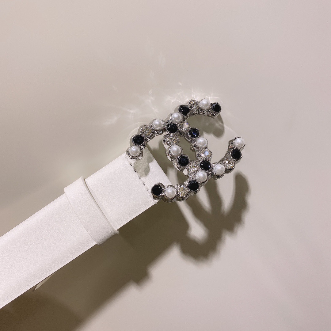 Pearl CC Logo Belt. Authentic quality luxury belt crafted in genuine leather comes with authenticity card, dust bag and gift bag. Elevate Your Style with the Lustrous Pearl CC Logo Belt.