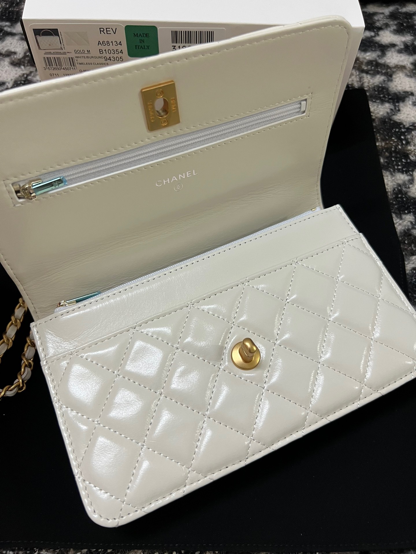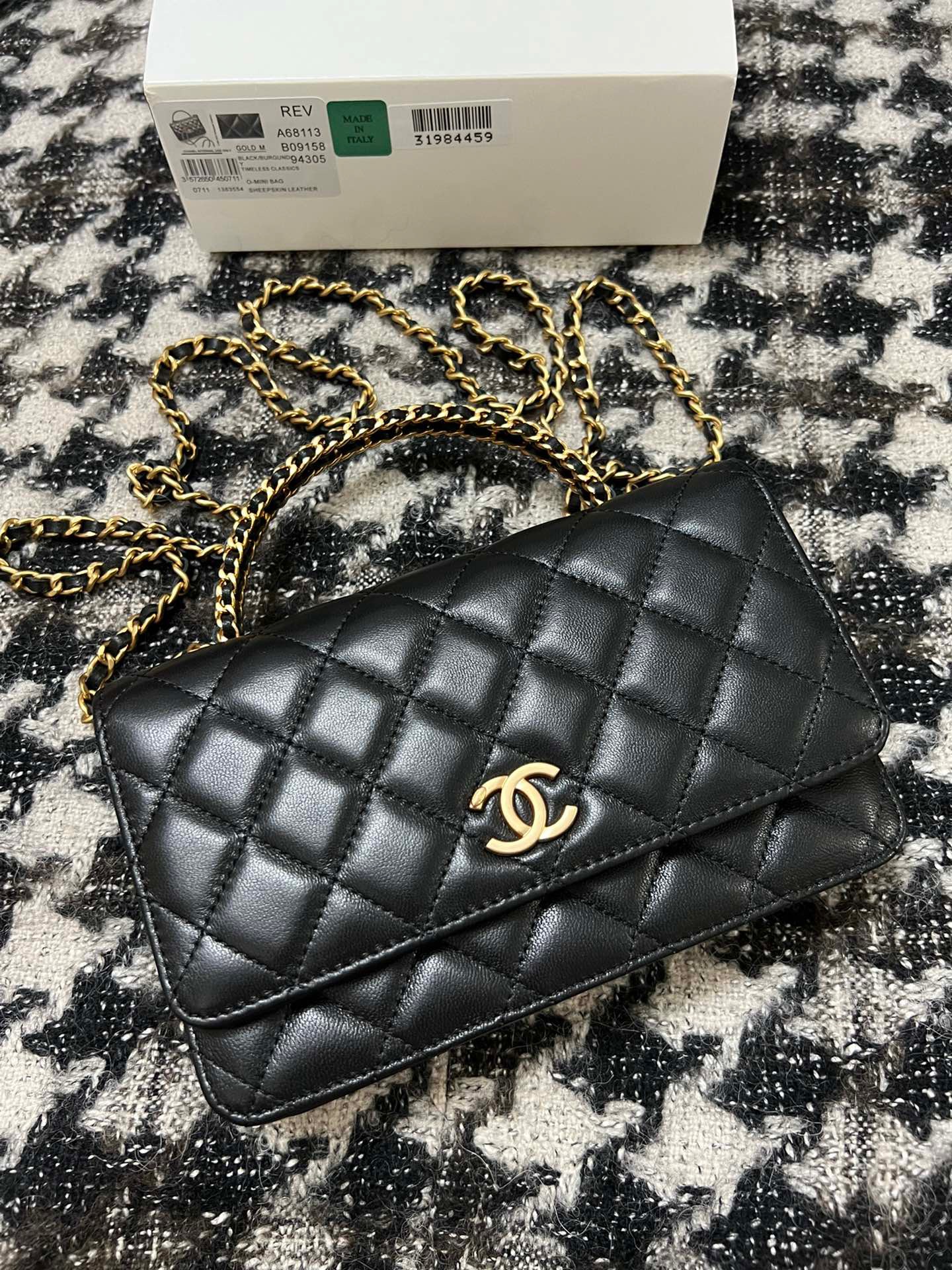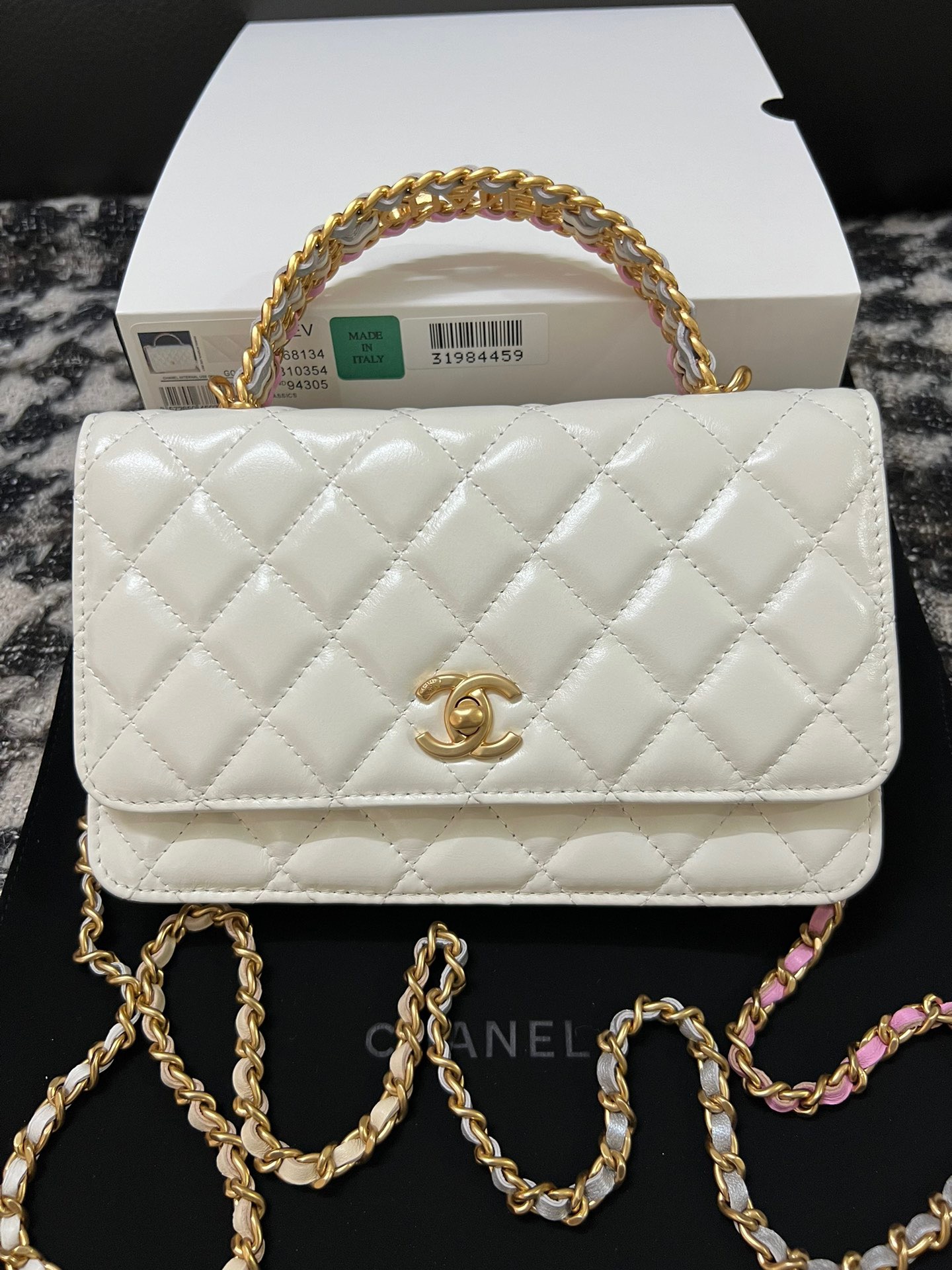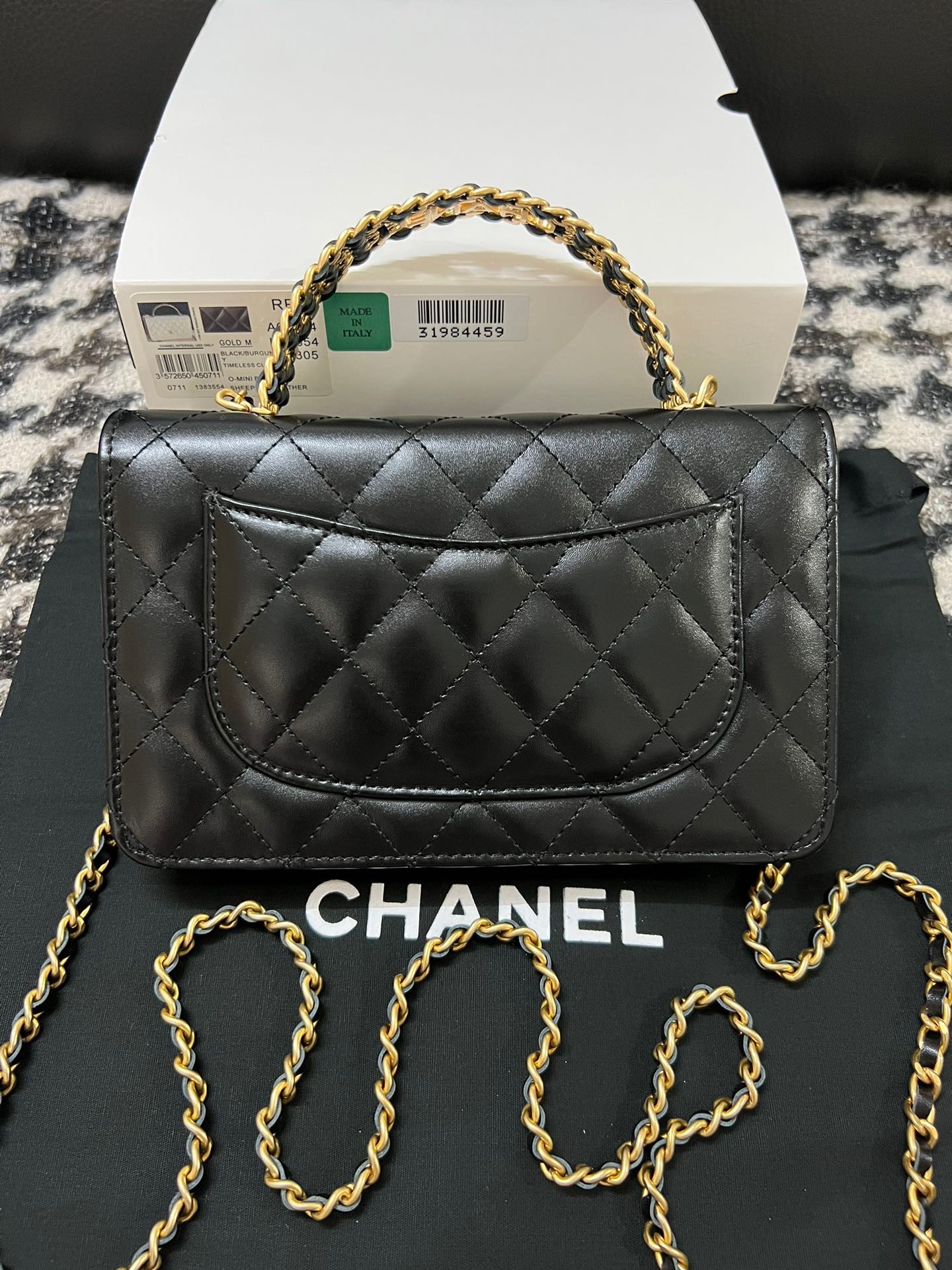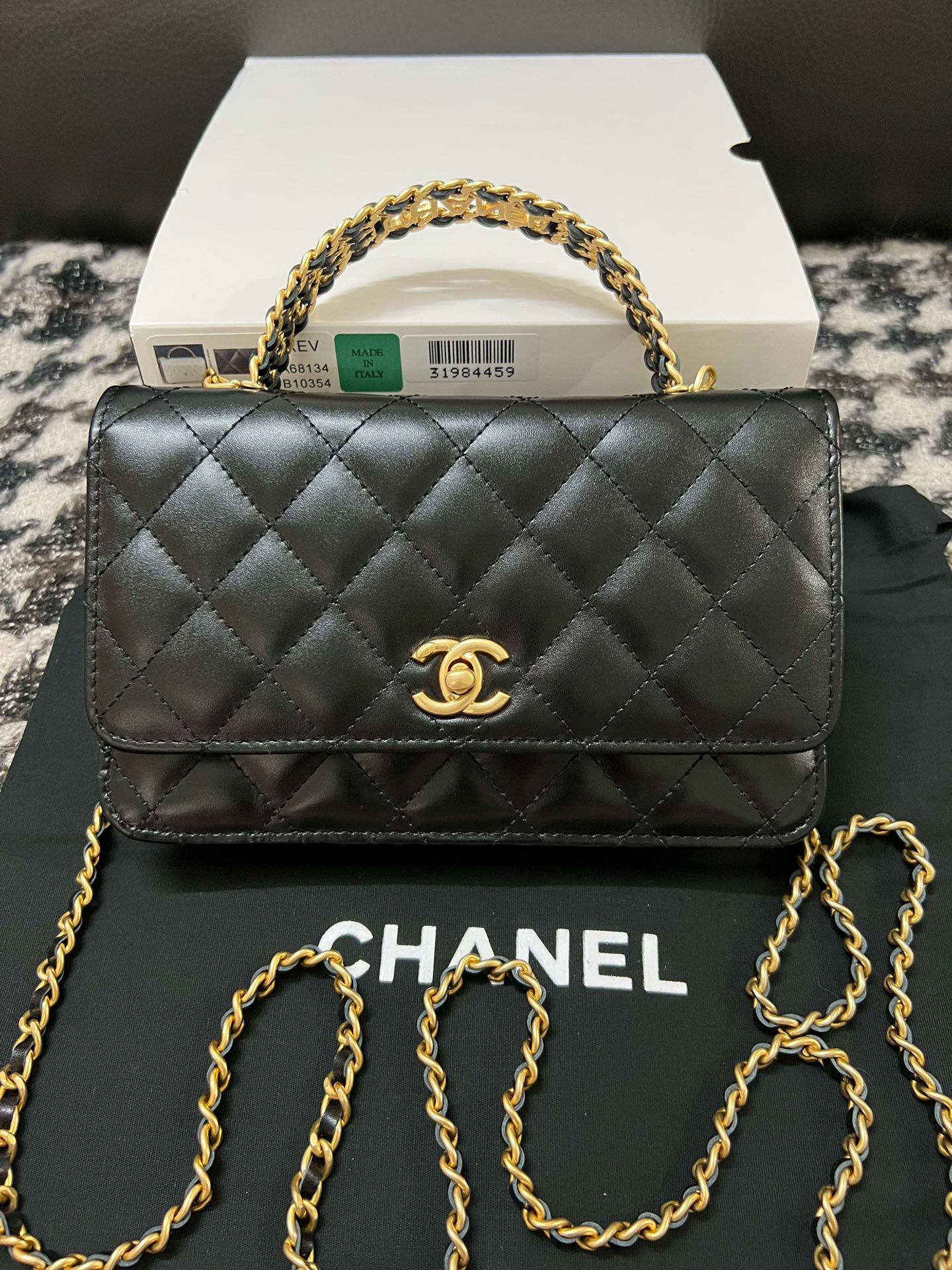 Wallet On Chain With Signature Handle. Authentic quality luxury bag crafted in genuine leather comes with authenticity card, dust bag and gift bag. Elevate your style with this wallet – where timeless design meets practical elegance.