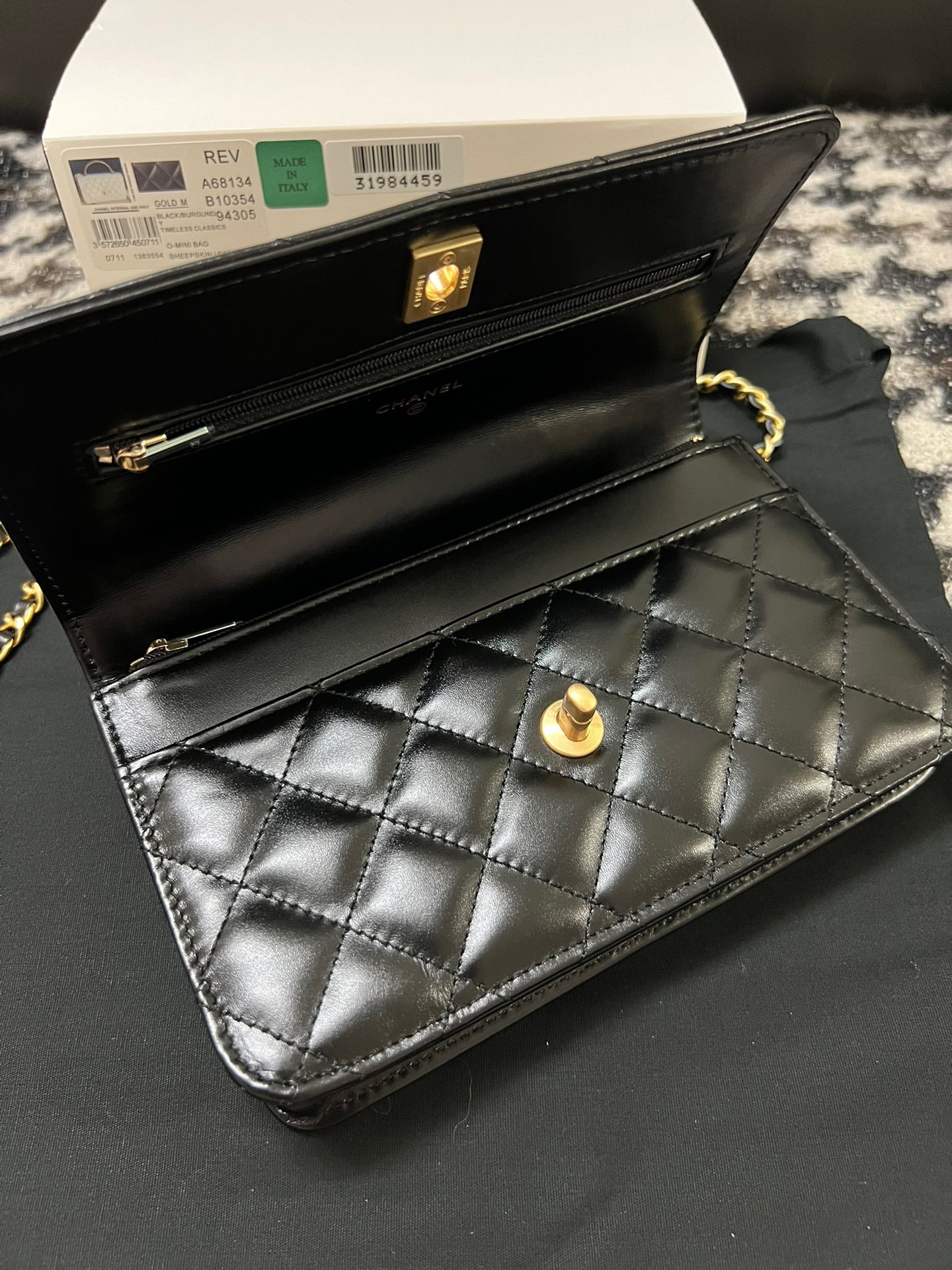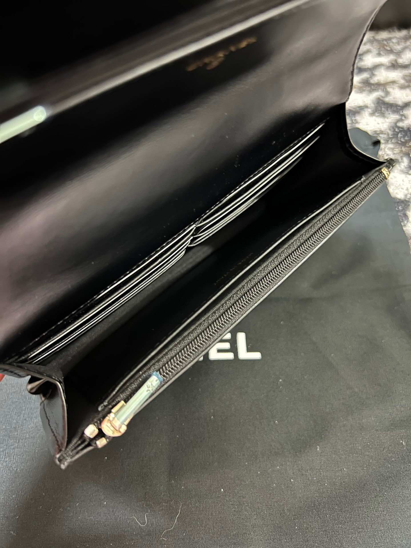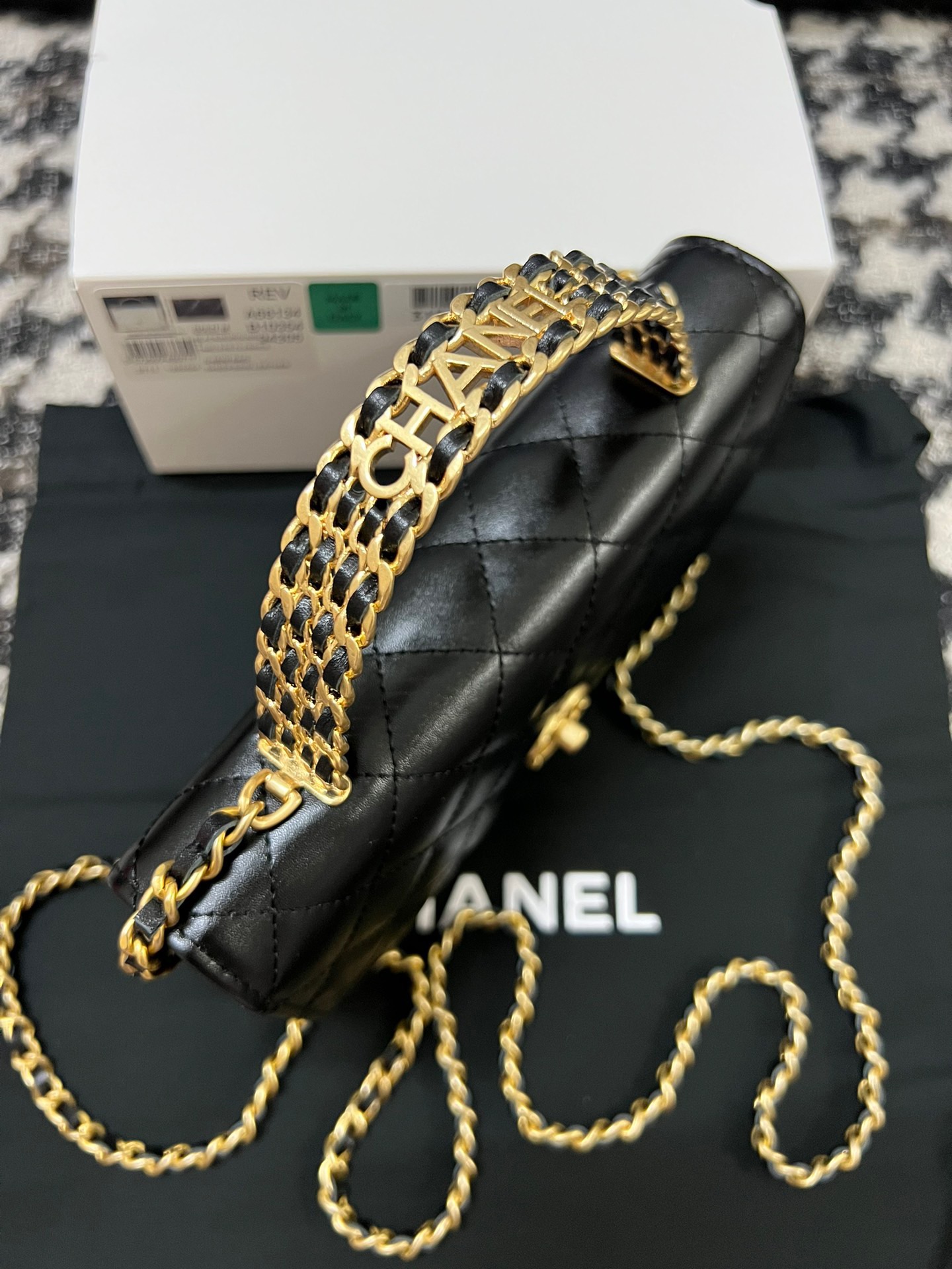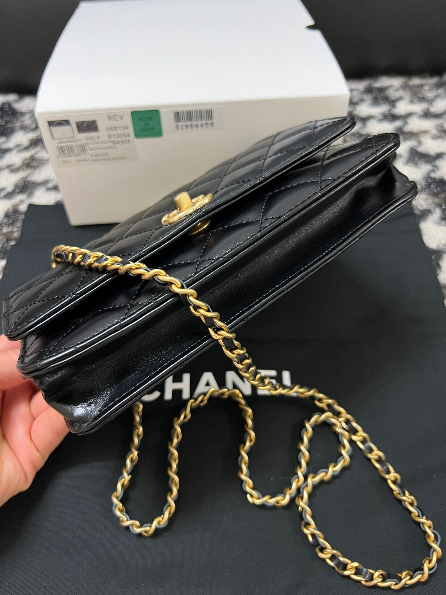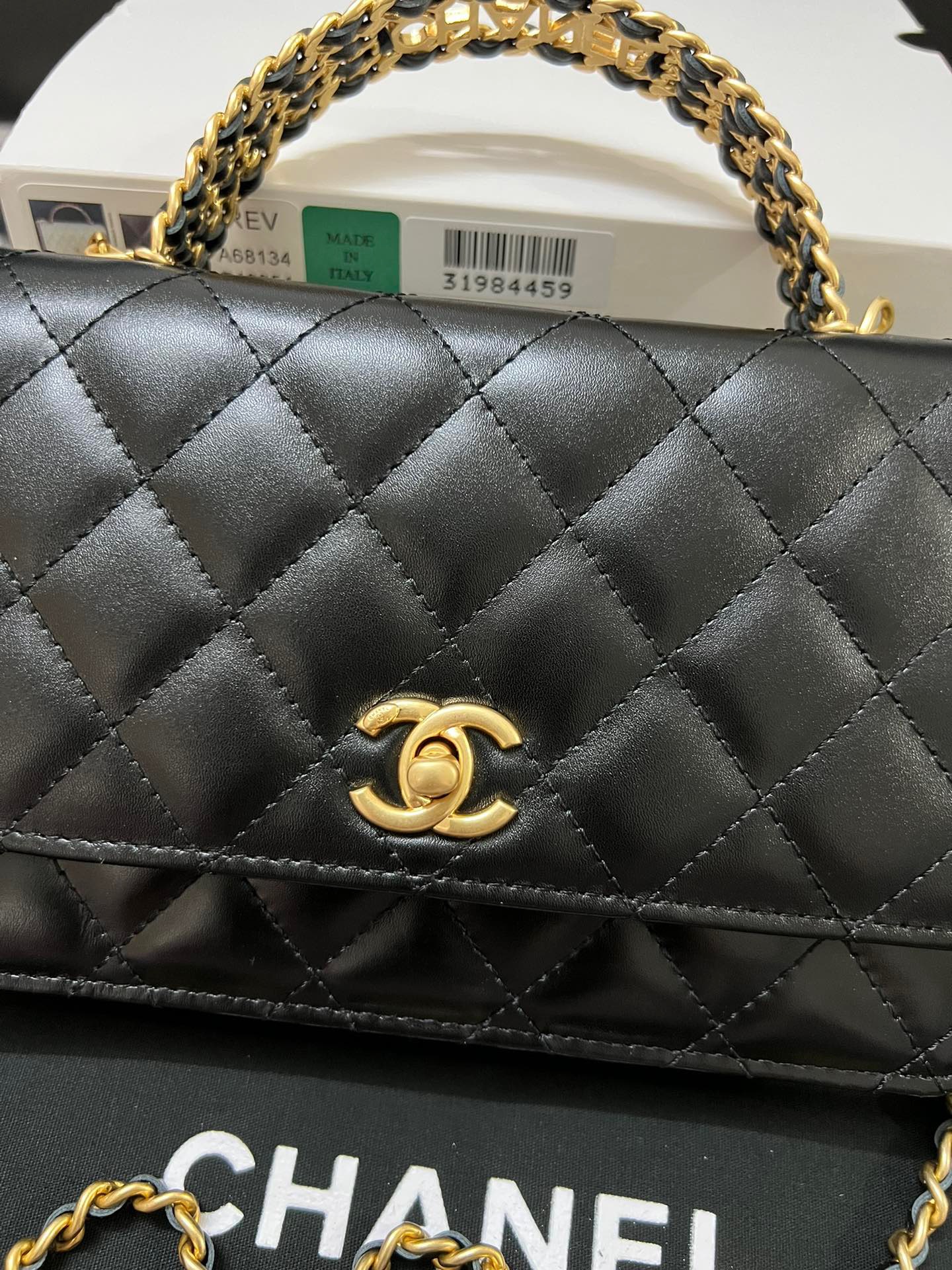 Wallet On Chain With Signature Handle. Authentic quality luxury bag crafted in genuine leather comes with authenticity card, dust bag and gift bag. Elevate your style with this wallet – where timeless design meets practical elegance.