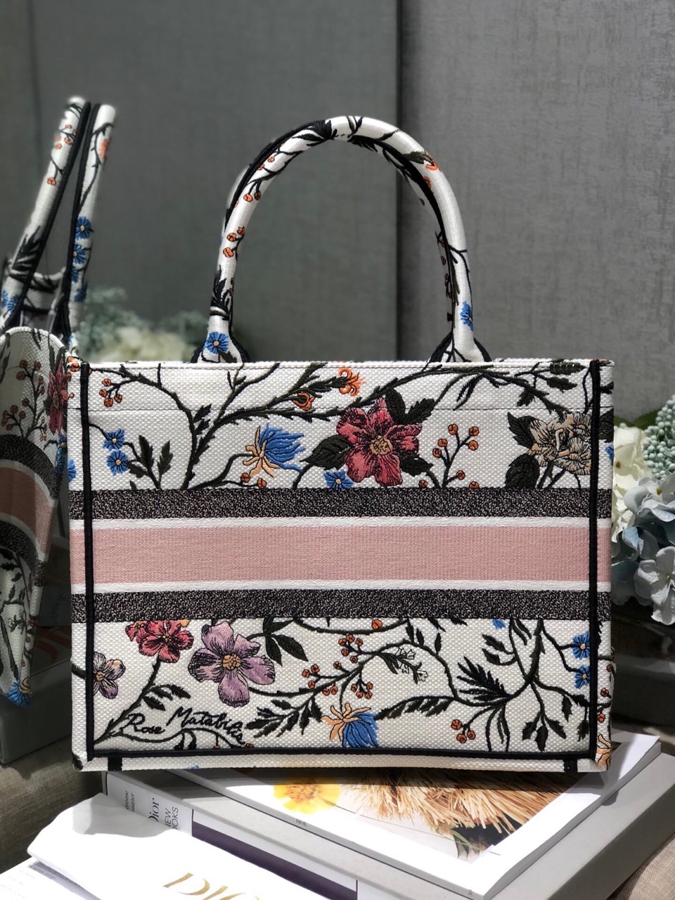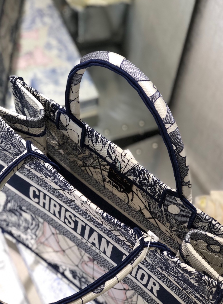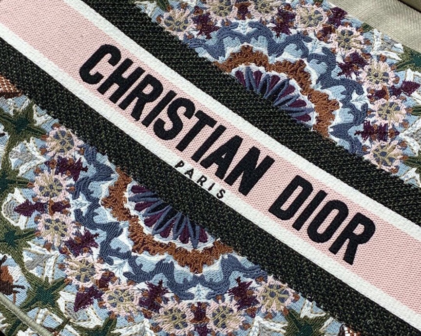 Introducing an original design by Creative Director Maria Grazia Chiuri, the Book Tote has become an iconic representation of the *ior aesthetic. Perfectly crafted to accommodate your daily necessities, this small-sized tote features intricate embroidery and the signature ‘Christian *ior’ emblem on the front. This versatile carryall showcases the exceptional craftsmanship synonymous with *ior, making it an excellent choice to complement your ensemble when paired with a coordinating pouch or other small leather goods.