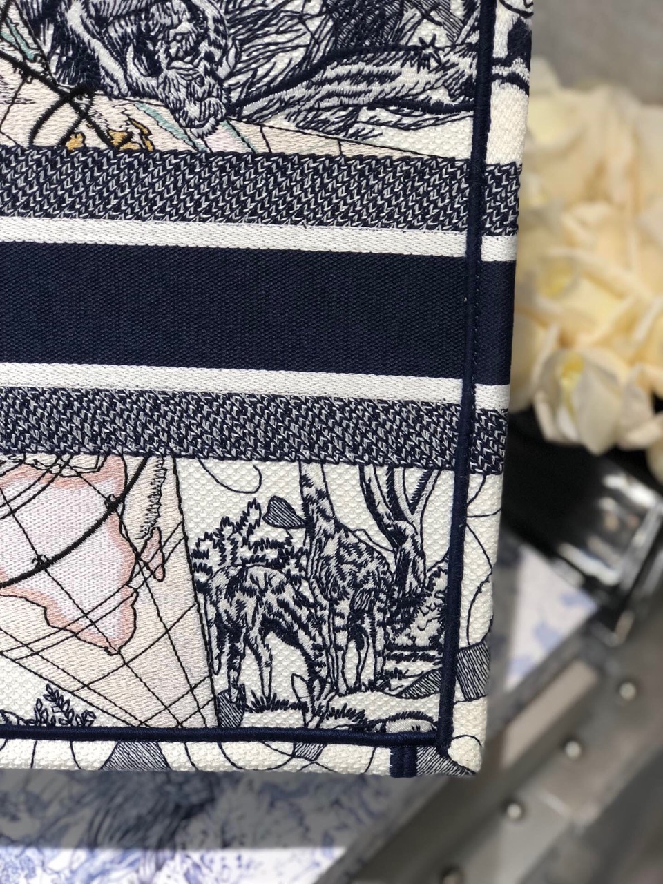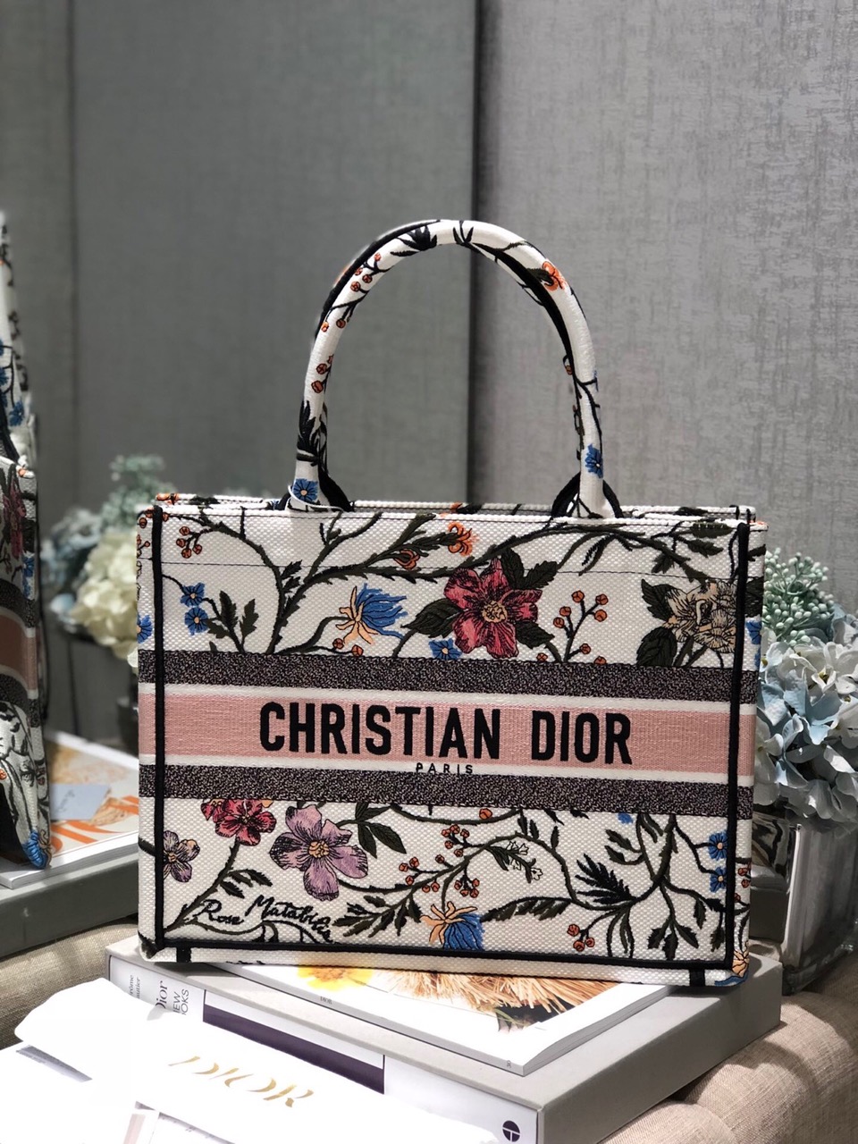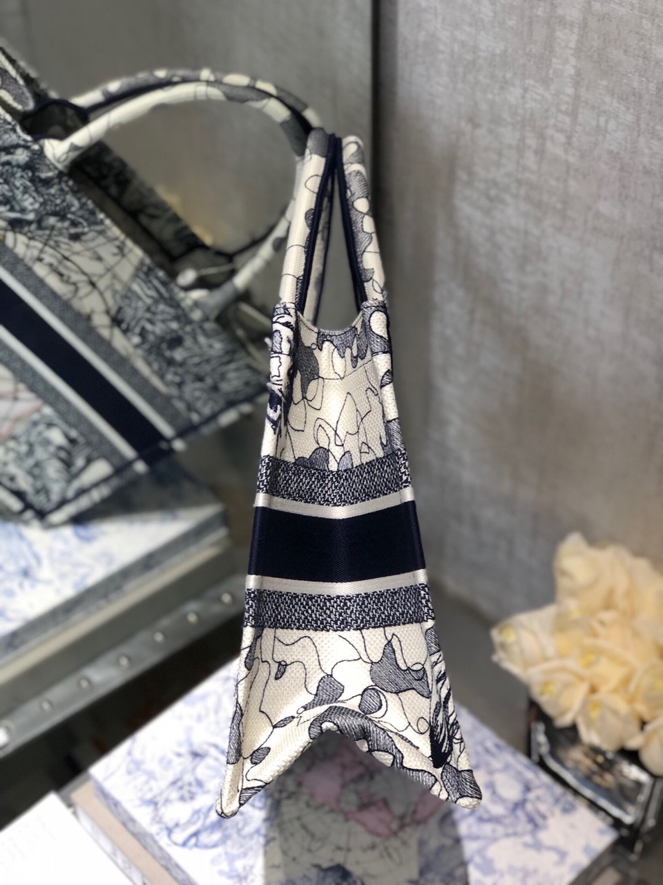 Introducing an original design by Creative Director Maria Grazia Chiuri, the Book Tote has become an iconic representation of the *ior aesthetic. Perfectly crafted to accommodate your daily necessities, this small-sized tote features intricate embroidery and the signature ‘Christian *ior’ emblem on the front. This versatile carryall showcases the exceptional craftsmanship synonymous with *ior, making it an excellent choice to complement your ensemble when paired with a coordinating pouch or other small leather goods.