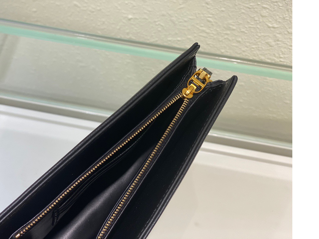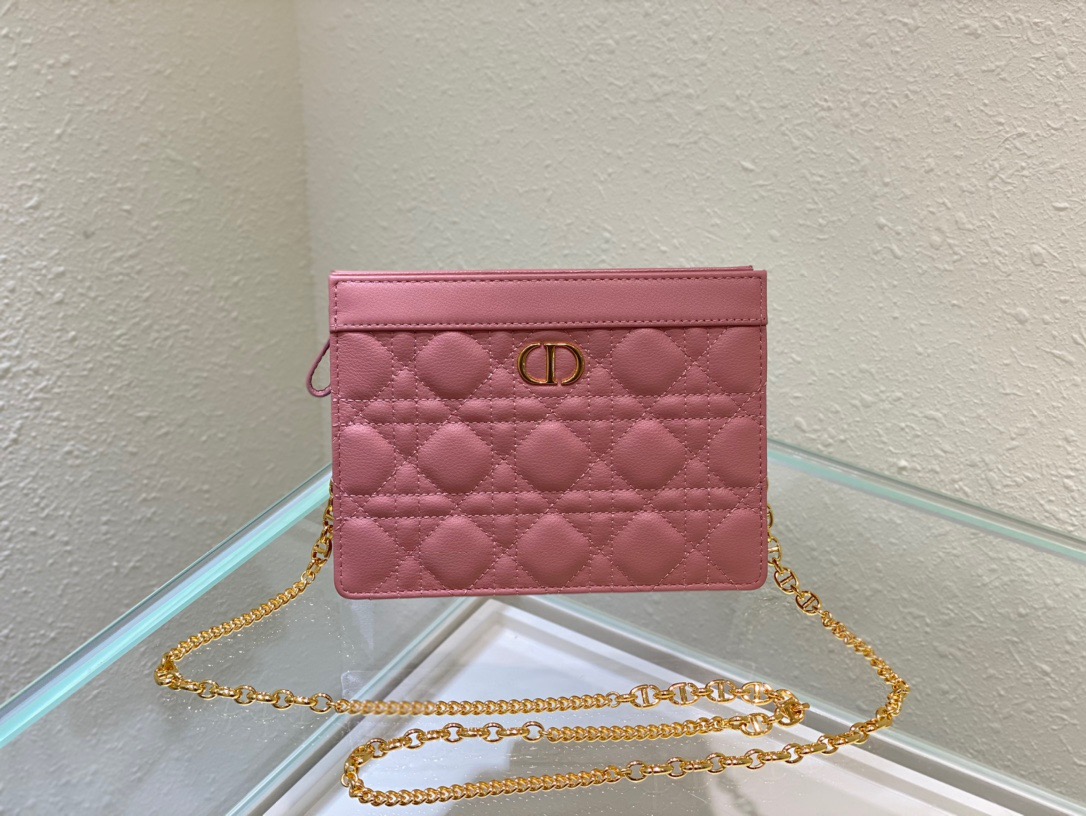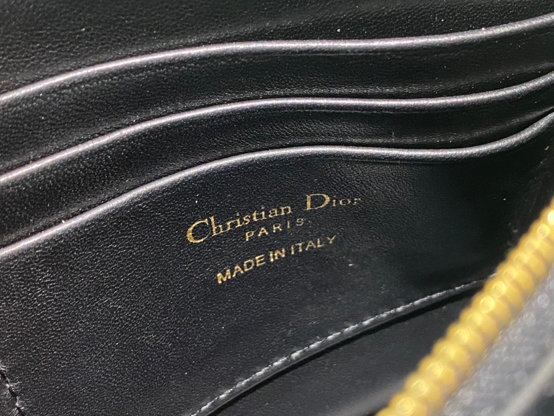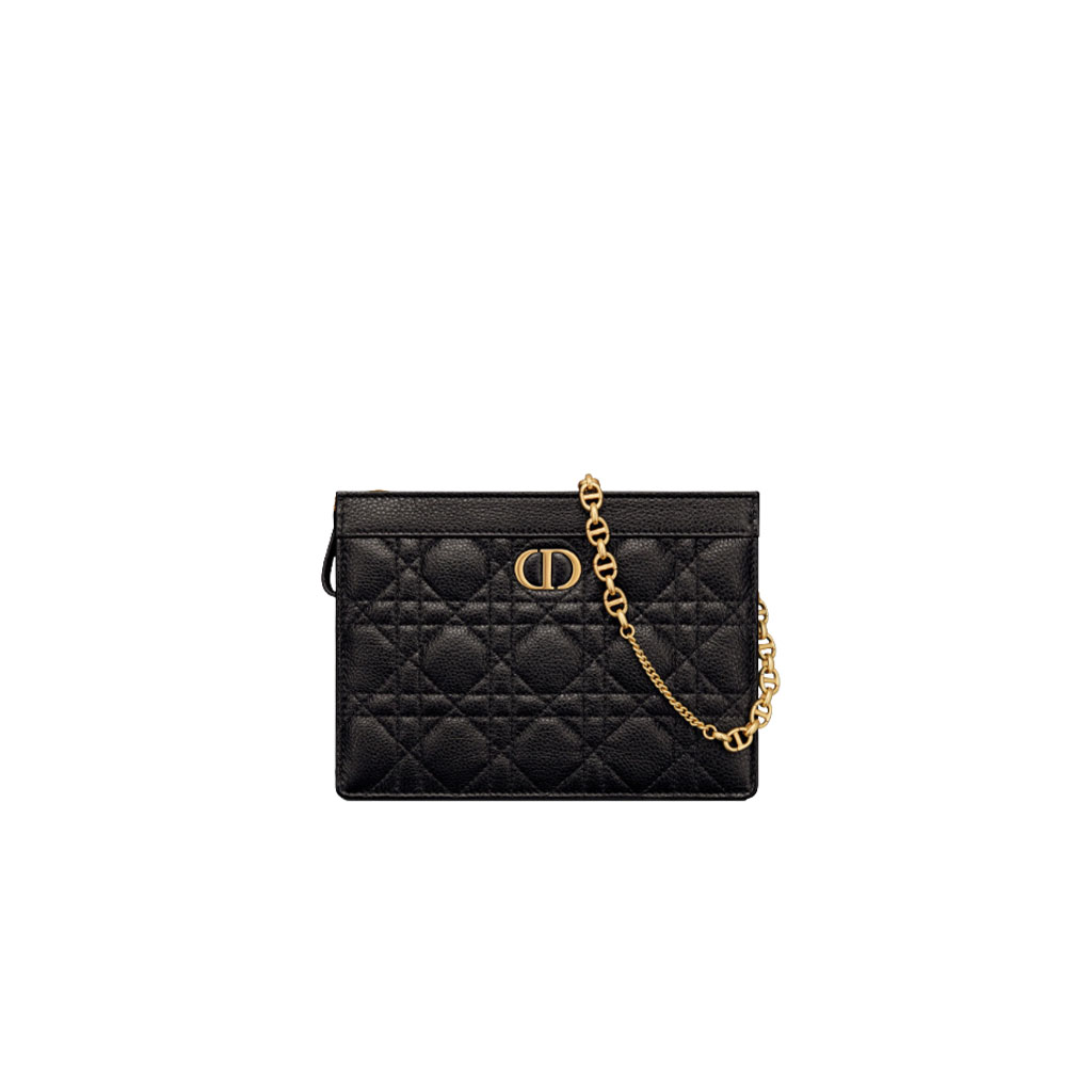 This stylish zipped pouch with a chain perfectly blends contemporary functionality with the House’s timeless elegance. Created using luxurious calfskin, it showcases the iconic Cannage stitching and features a prominent ‘CD’ signature on the front. The removable chain, embellished with ‘CD’ chain links, allows for versatile carrying options – by hand, over the shoulder, or crossbody. This pouch effortlessly complements other items from the same collection, completing a cohesive look.