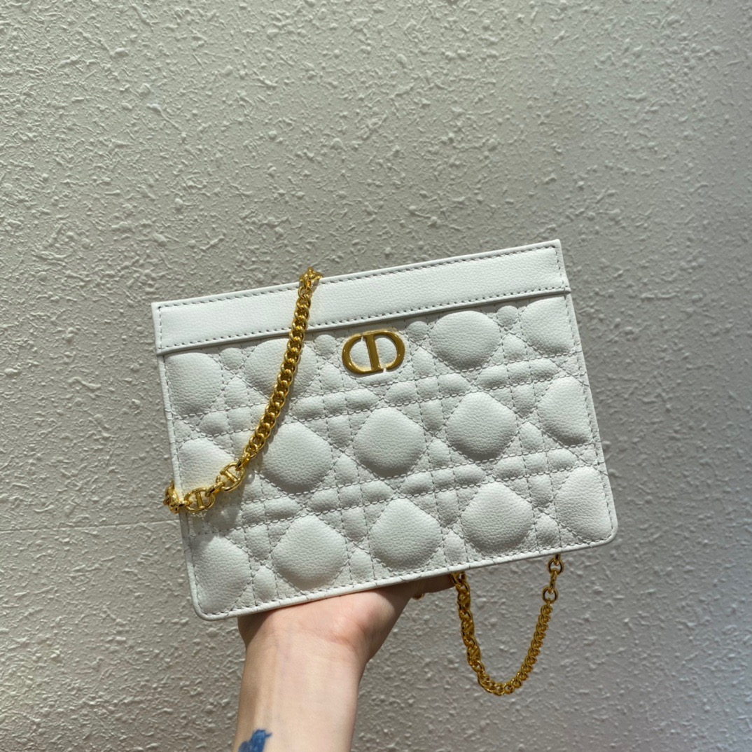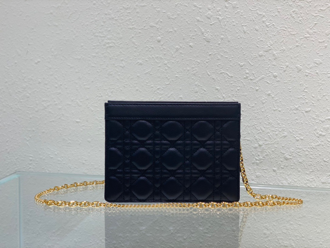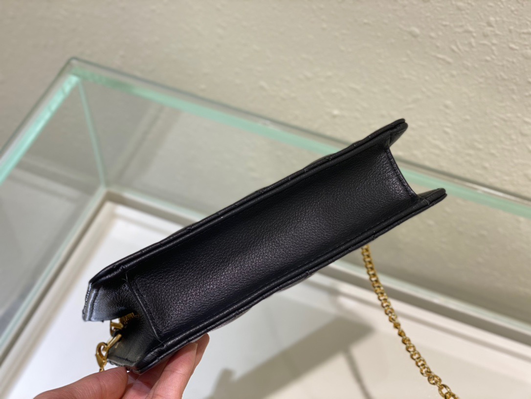 This stylish zipped pouch with a chain perfectly blends contemporary functionality with the House’s timeless elegance. Created using luxurious calfskin, it showcases the iconic Cannage stitching and features a prominent ‘CD’ signature on the front. The removable chain, embellished with ‘CD’ chain links, allows for versatile carrying options – by hand, over the shoulder, or crossbody. This pouch effortlessly complements other items from the same collection, completing a cohesive look.