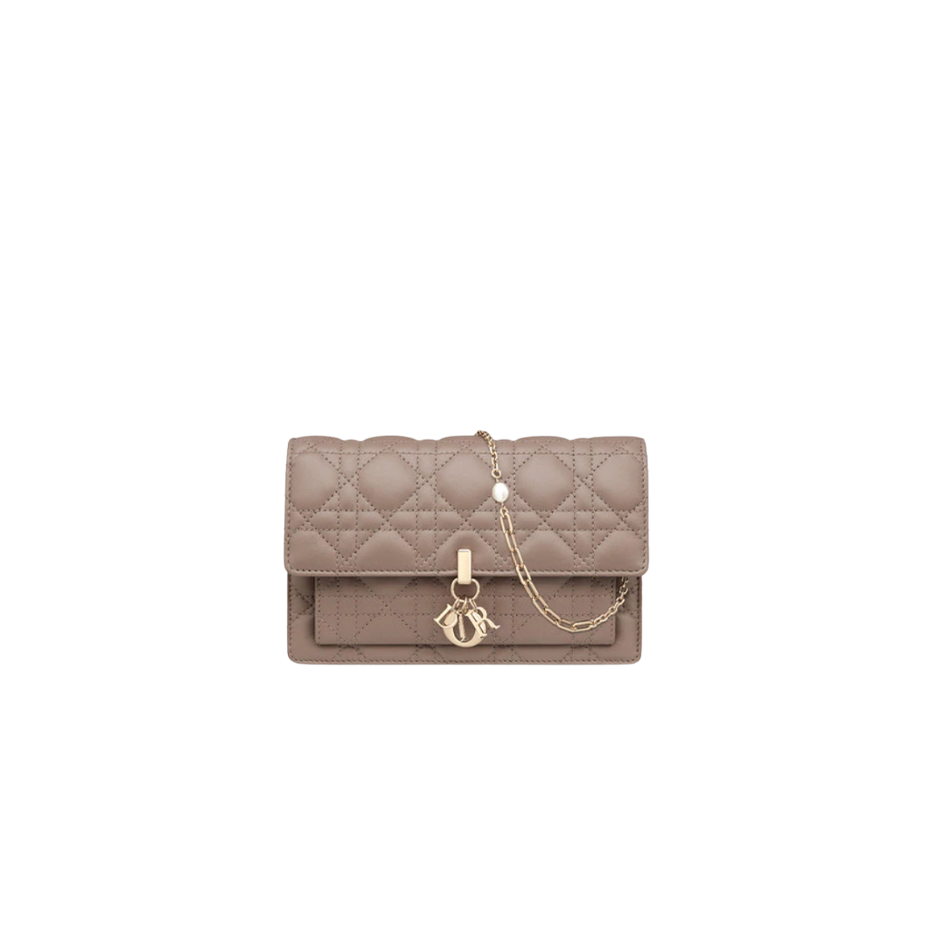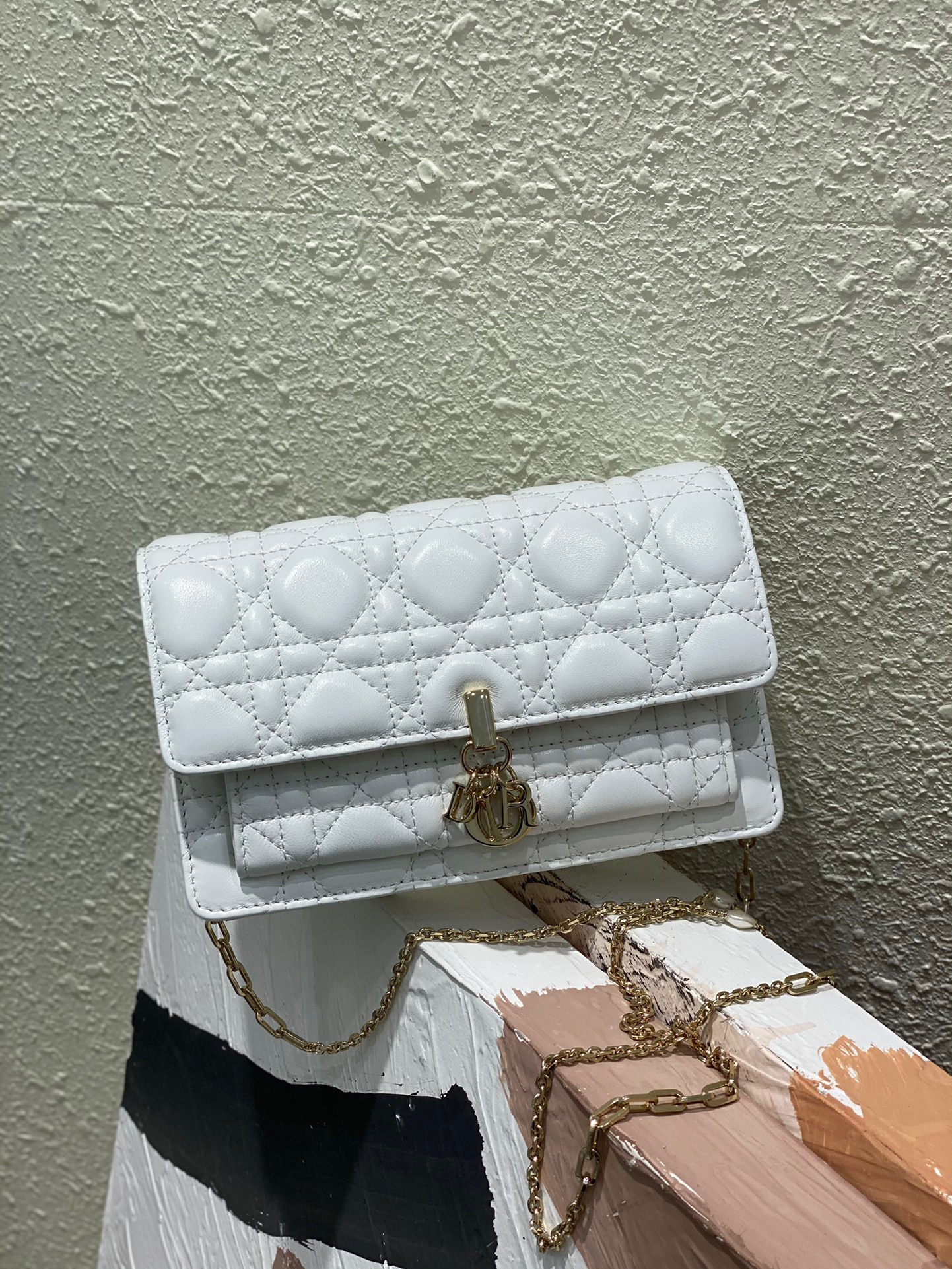 Lady Dior Chain Pouch. Authentic quality luxury bag crafted in genuine leather comes with authenticity card, dust bag and gift bag. Compact, Spacious, and Timeless.