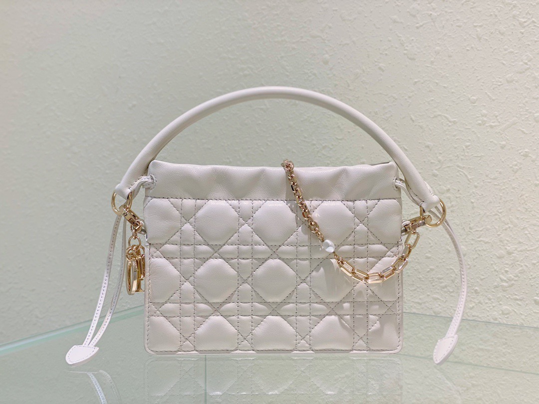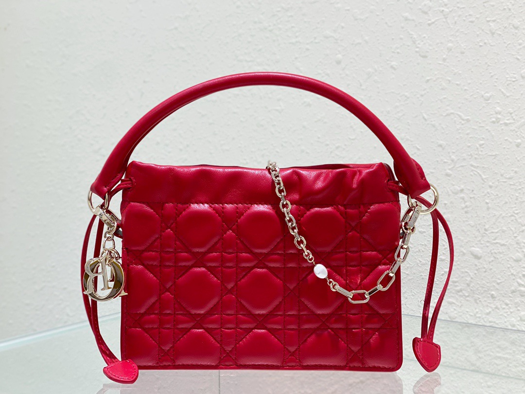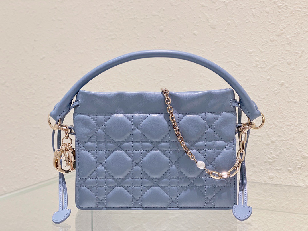 Lady Dior Top Handle Drawstring Mini Bag. Authentic quality luxury bag crafted in genuine leather comes with authenticity card, dust bag and gift bag. Embrace Timeless Sophistication.