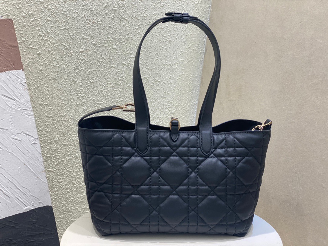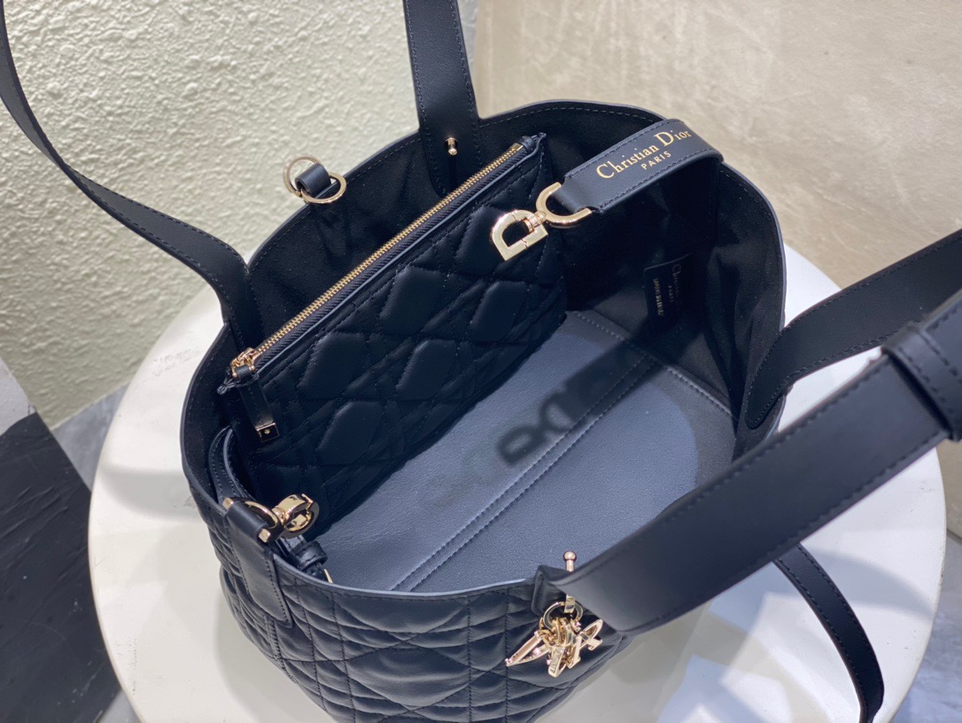 Unveiled during the Spring-Summer 2023 fashion show, the Dior Toujours bag effortlessly marries style and practicality. This exceptional piece, meticulously crafted from black calfskin adorned with striking Macrocannage topstitching, boasts a generously spacious interior compartment thoughtfully accompanied by a coordinating pouch, ensuring meticulous organization for all your essentials. The elegant leather strap closure not only provides security but also allows the iconic CD Lock closure to gracefully adjust the bag’s sides, enhancing its timeless silhouette. With the convenience of adjustable leather handles and small notches, this petite masterpiece can be carried by hand with the utmost ease and sophistication.