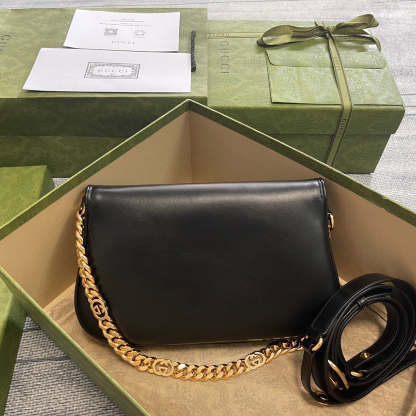 Taking inspiration from *ucci’s archives, the House presents a redesigned version of the iconic Interlocking G logo for the *ucci Love Parade collection. Made with meticulous craftsmanship, this shoulder bag features a round shape and is exquisitely constructed from leather. The addition of a delicate chain strap enhances the refined nature of this accessory.