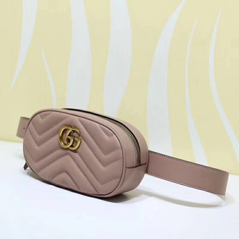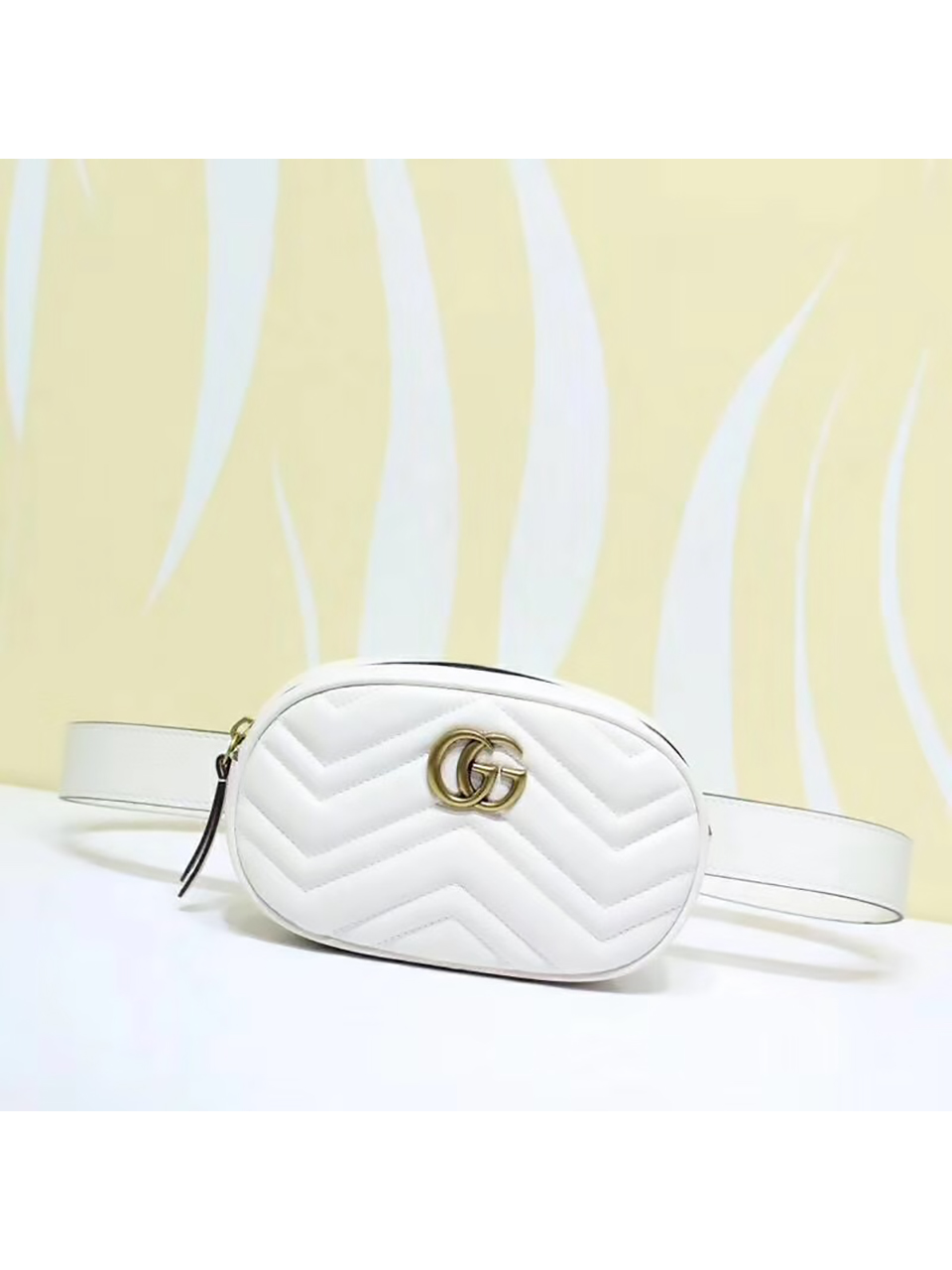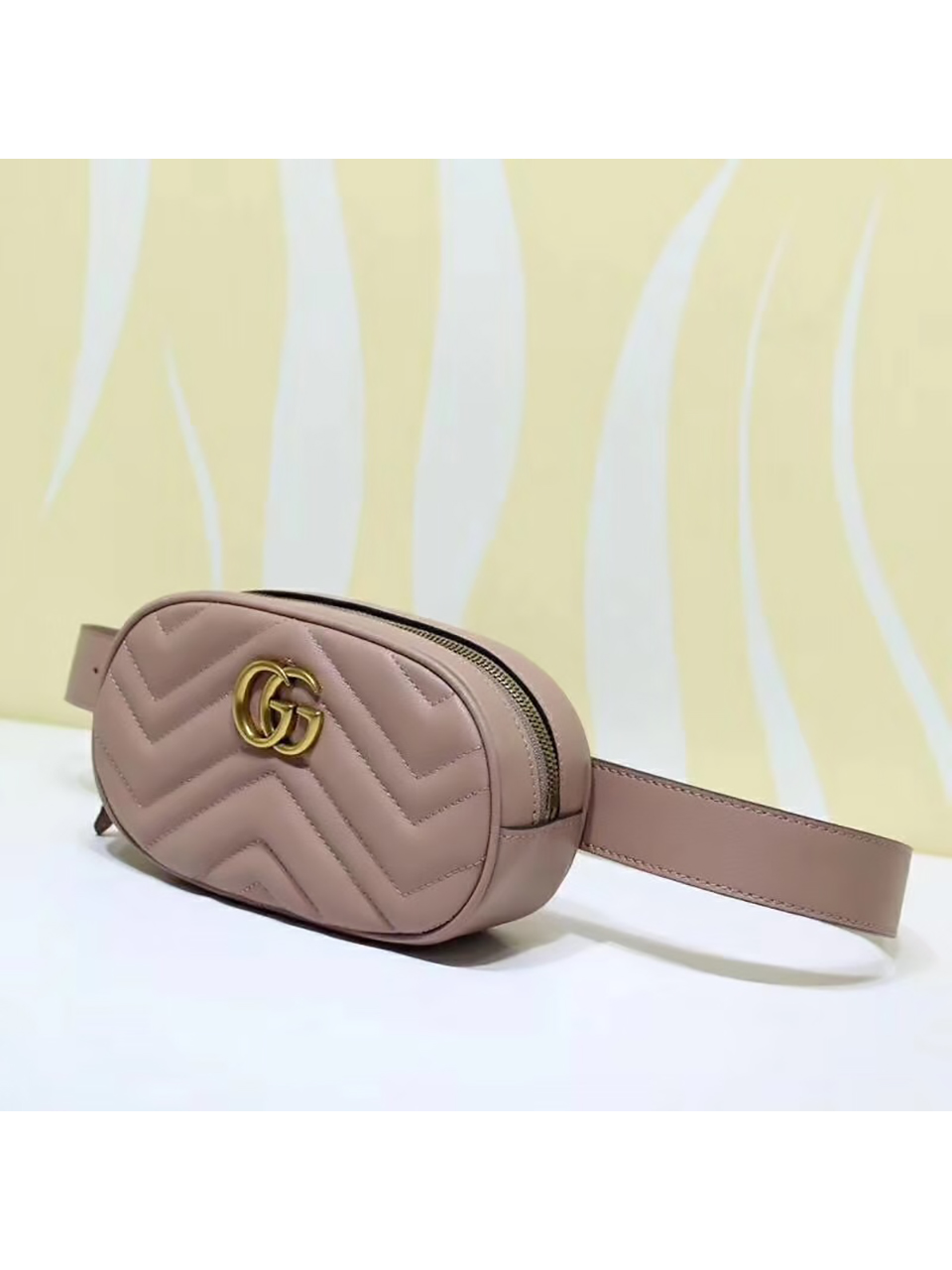 Introduced in Alessandro Michele’s Pre-Fall 2017 collection, the belt bag is a captivating addition to the renowned GG Marmont line. Exhibiting a harmonious blend of sportswear influence and contemporary design, this accessory showcases an elegantly rounded silhouette, accompanied by a leather belt thoughtfully crafted to enable a stylish high-waisted wear. Notably, it proudly flaunts the iconic Double G embellishment, a delightful homage to the vintage Running G emblem.