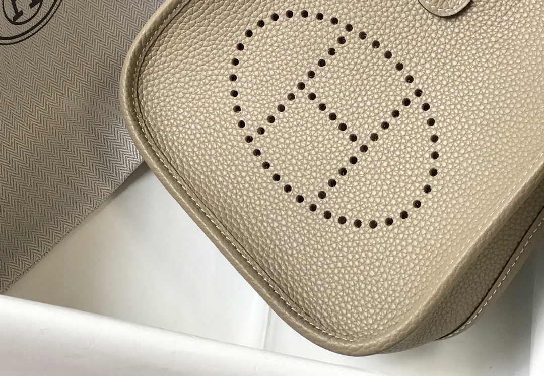 Introducing the ultimate bag for the busy woman. Created from luxurious leather in 2016, this *rmès mini Évelyne shoulder bag is designed to effortlessly carry your essentials without you even realizing it’s there. With its elegant punch hole H logo adorning the front, this bag exudes style. It also offers convenience with its detachable shoulder strap, allowing you to wear it however you prefer. Adding to its appeal, this bag combines minimalist charm with utmost comfort. The silver-tone hardware, strap closure, and absence of lining add to its sleek design. Complete with a perforated H logo on the front, this bag is truly a must-have for the woman on the go.