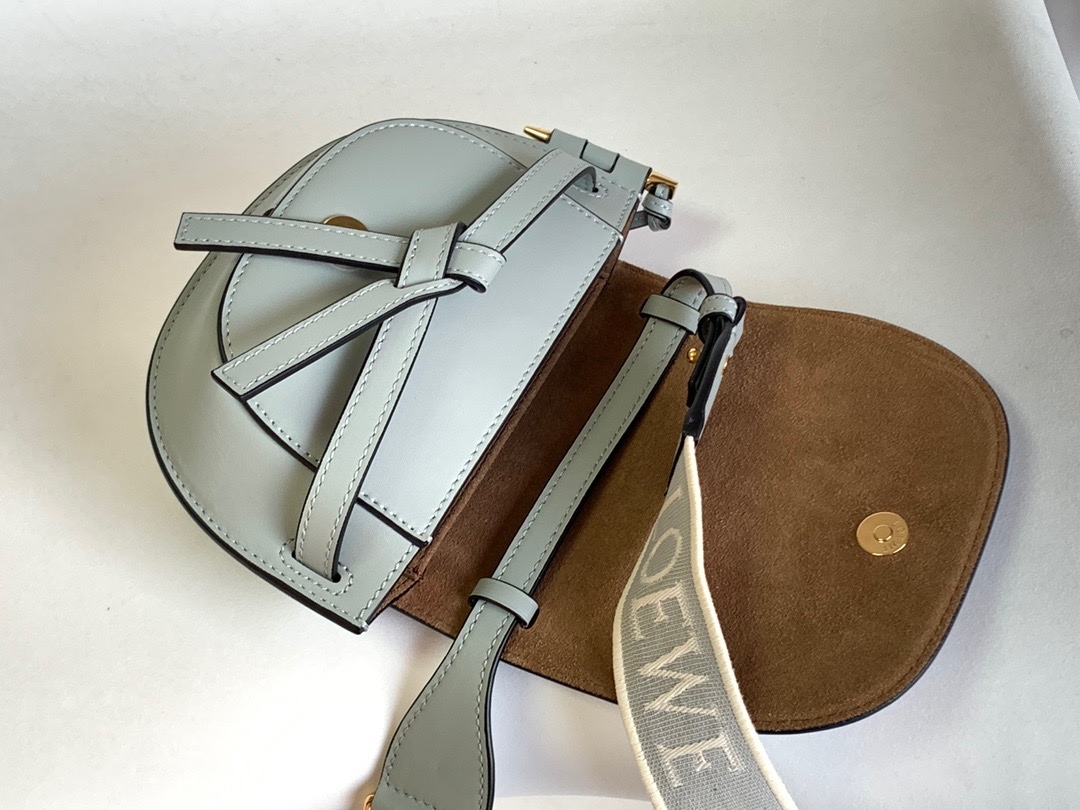 Exquisitely designed with utmost precision, the Mini Gate Dual showcases *OEWE’s unparalleled expertise in leatherwork, enveloped in supple calfskin. Its distinctive features include a meticulously saddle-stitched knotted leather strap and a side-latched metal pin, from which the bag derives its name. Moreover, this miniature rendition is equipped with a removable shoulder strap, also rendered in calfskin, embellished with a repeated LOEWE pattern crafted in jacquard.