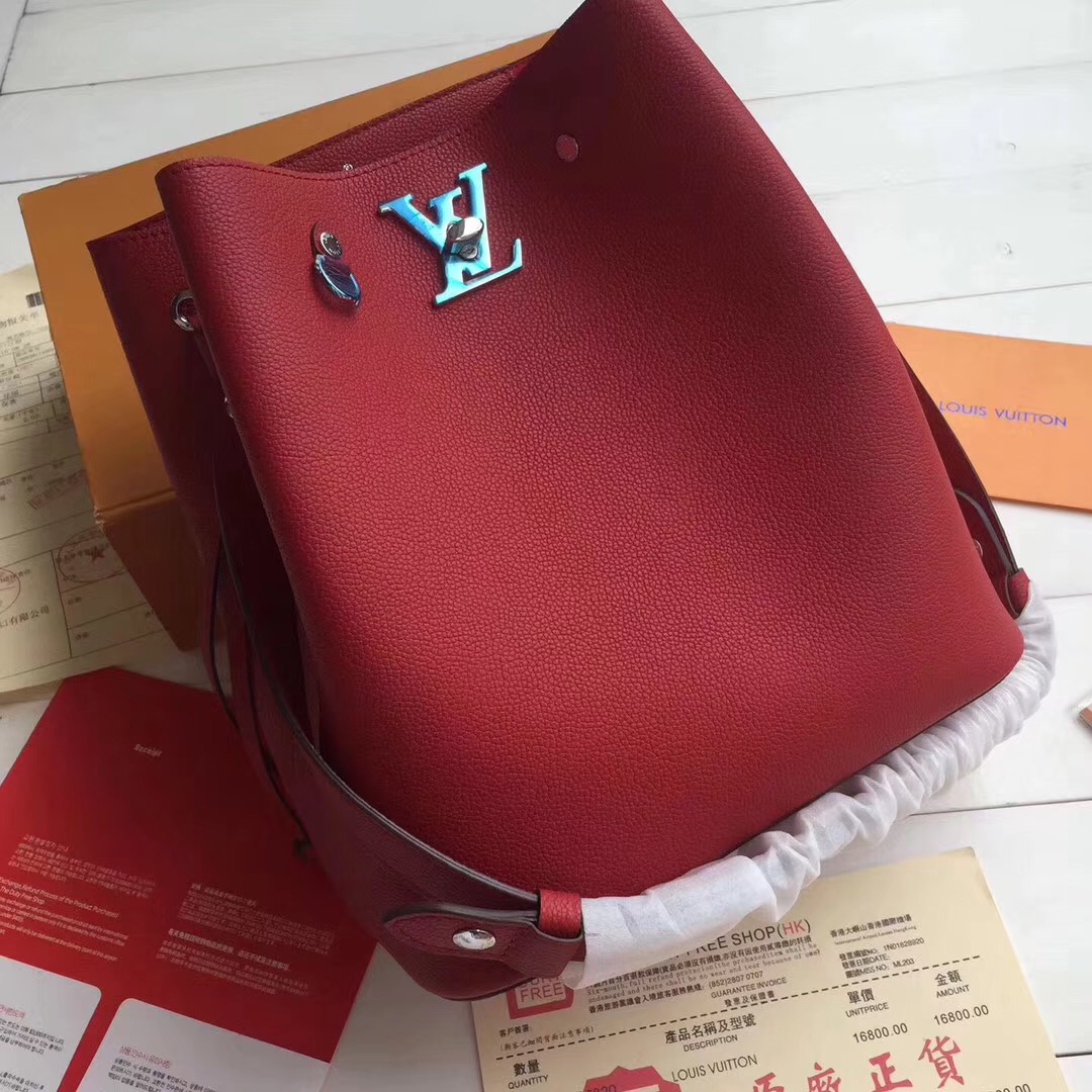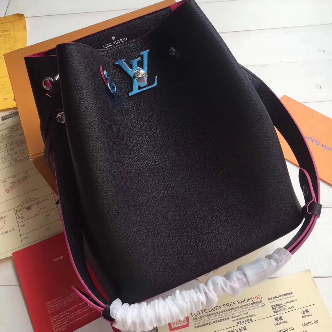 ‘LockMe’ Bucket Bag. Authentic quality luxury bag crafted in genuine leather comes with authenticity card, dust bag and gift bag. Classic Design Meets Modern Luxury!