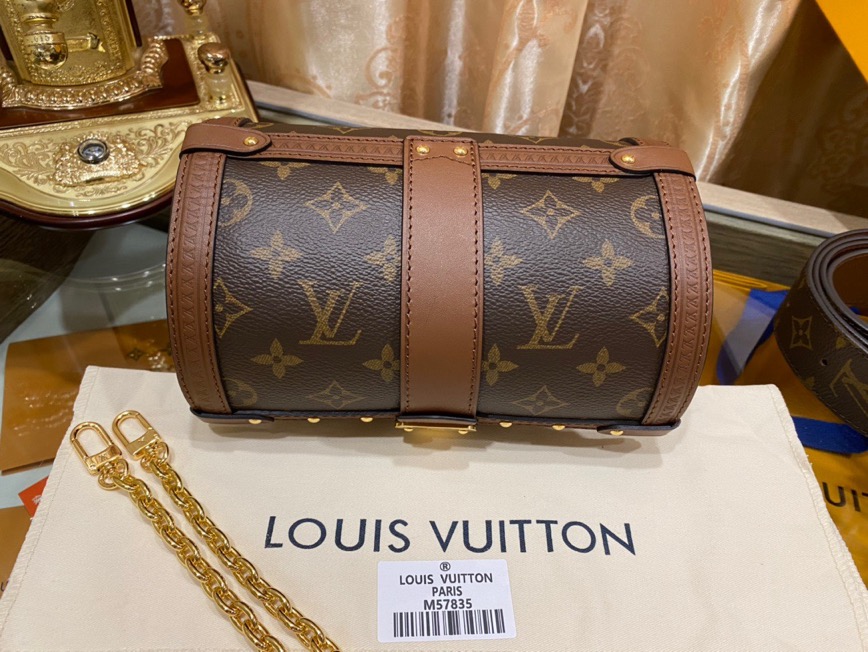 Nicolas Ghesquière unveils a stunning creation, blending femininity and casual style, drawing inspiration from the historic archives of *OUIS *TON. In this fashion-forward moment, the renowned Papillon duffle bag undergoes a marvelous transformation, emerging as a chic and sophisticated semi-rigid baguette. Through delicate details such as the S-Lock, LV-embossed trunk trimmings, and elegantly placed studs, the design pays homage to the House’s storied beginnings in trunkmaking.