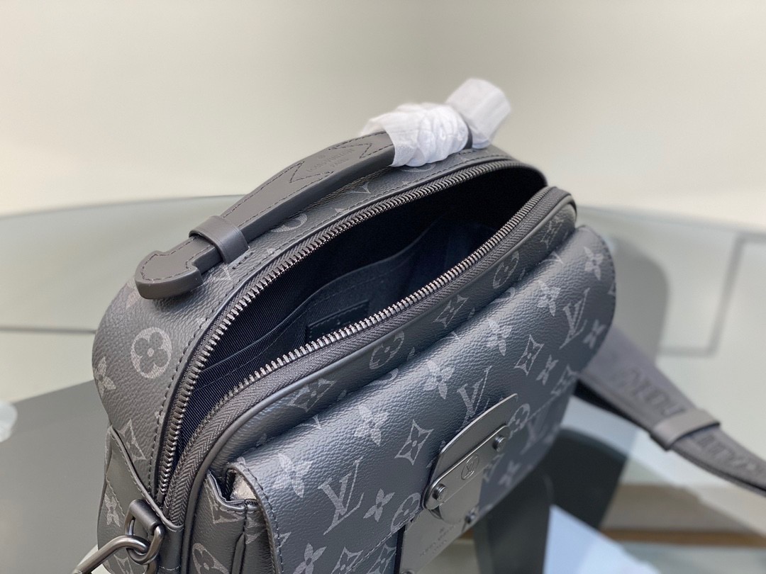 The S Lock Messenger in Monogram Macassar canvas showcases a unique closure, drawing inspiration from a trunk lock crafted by Georges Vuitton back in 1886. A meticulous finishing technique imparts the magnetic metal clasp with a strikingly contemporary appearance. Moreover, this avant-garde bag boasts a spacious zipped compartment, reminiscent of classic trunks, along with a luxurious leather handle and an iconic LV signature strap. Together, these features render it a fashionable and convenient accessory.