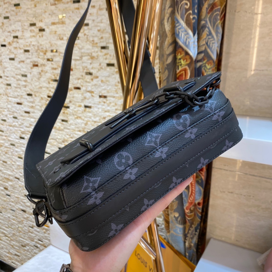 Introducing the elegant addition to the New Classics collection – the Messenger. Imbued with the timeless sophistication of *OUIS *TON heritage, this exquisite piece showcases the fusion of supple Monogram Taurillon leather and Monogram Eclipse canvas. Signature details, such as the steamer-style chain, adorn this messenger beautifully. Boasting practicality, it is effortlessly carried with its removable strap. Inside, a generous zipped compartment awaits, ensuring ample storage, while a front flap pocket with a secure magnetic closure provides added convenience.