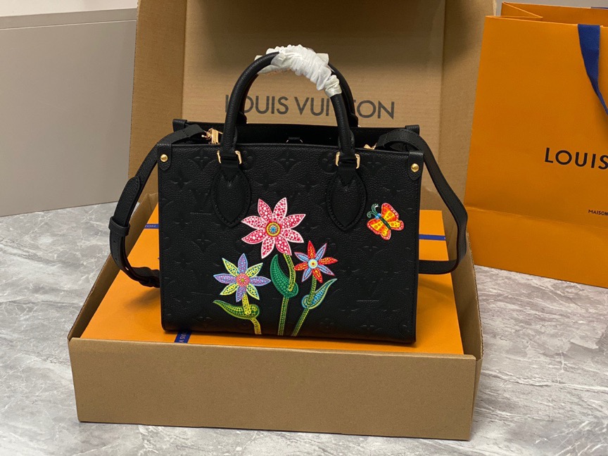 LV x Yayoi Kusama OnTheGo PM. Authentic quality luxury bag crafted in genuine leather comes with authenticity card, dust bag and gift bag. Where High-Precision Marquetry Meets Exquisite Craftsmanship.