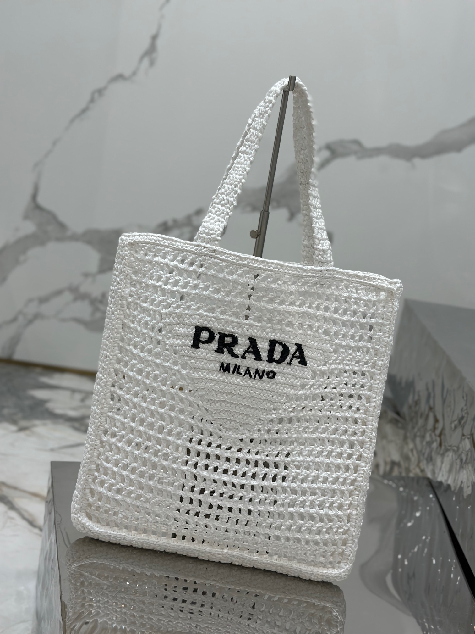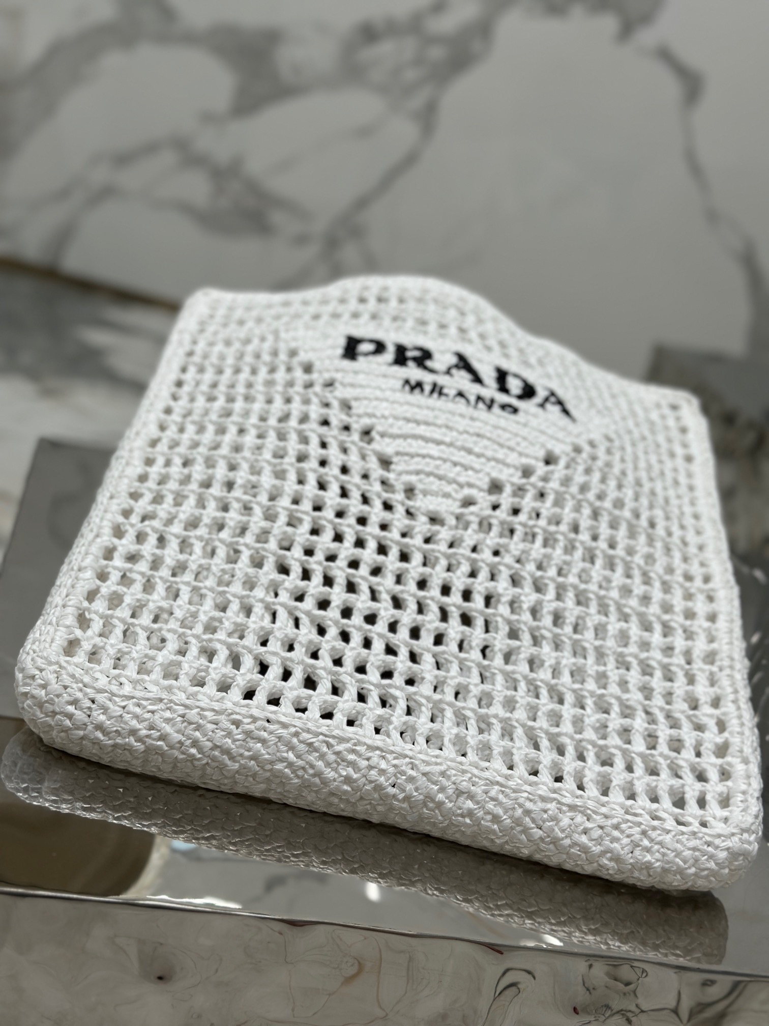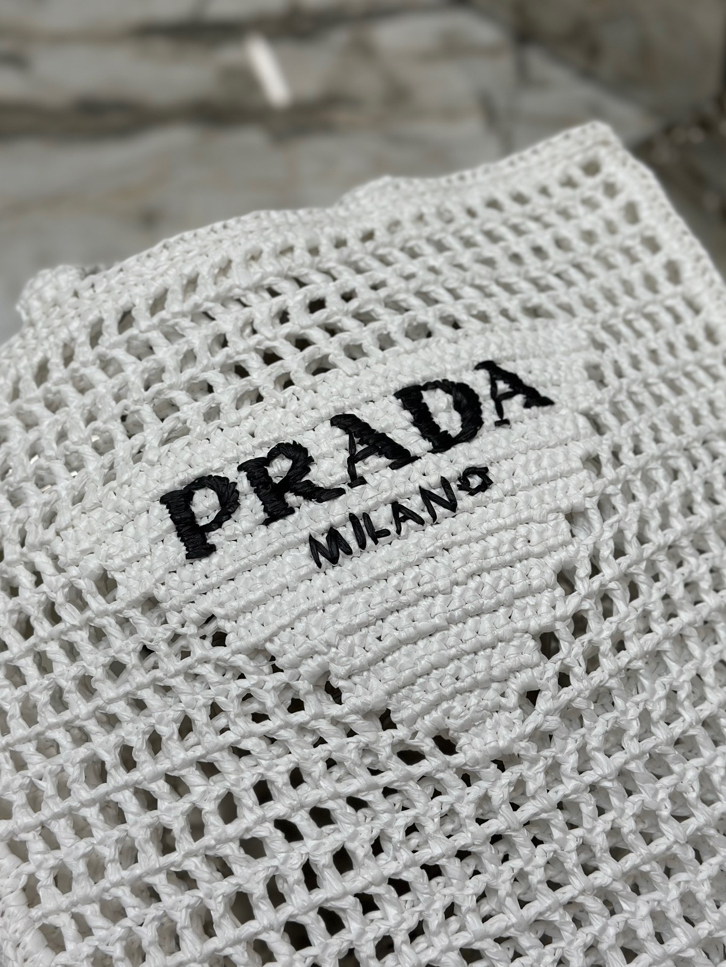 This tote bag is the perfect addition to any summer wardrobe! Adorned with Prada’s iconic triangle logo and embroidered lettering, its soft, deconstructed design is made with a light and natural raffia-effect yarn. It’s sure to add an elevated touch to your ensemble.
