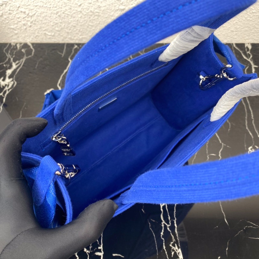 This sleek drill tote features a contemporary reinterpretation with an eye-catching, embossed macro version of the Pr*da triangle logo on the front. Its versatile design allows for the inclusion of a detachable adjustable shoulder strap, making it suitable for both carrying as a handbag or using as a crossbody bag.