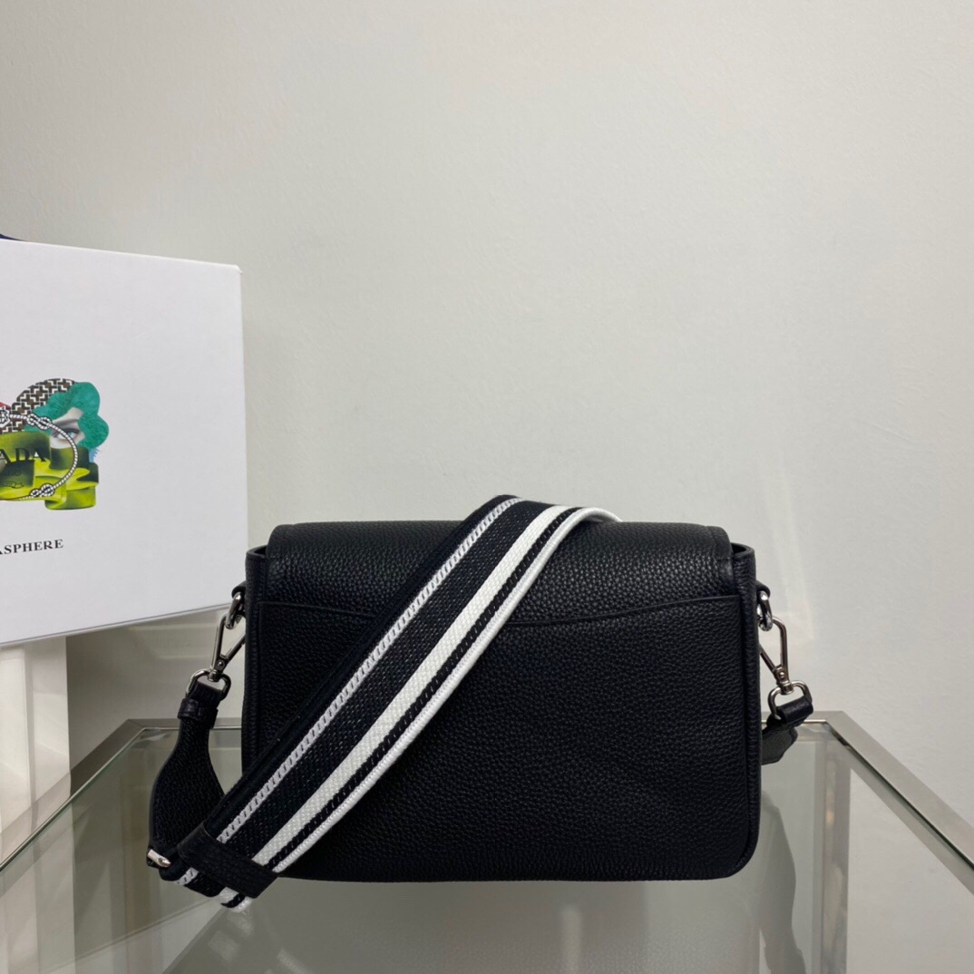 Exquisitely crafted, this compact leather bag unveils soft pleated sides and a contemporary shape that speaks of modernity. Dressed with elegance, the bag boasts a golden lettering logo delicately placed on its flap. Furthermore, its adjustable woven tape shoulder strap, adorned with an embroidered logo in a contrasting hue, adds a touch of versatility, allowing the bag to be effortlessly worn as a crossbody or shoulder bag.