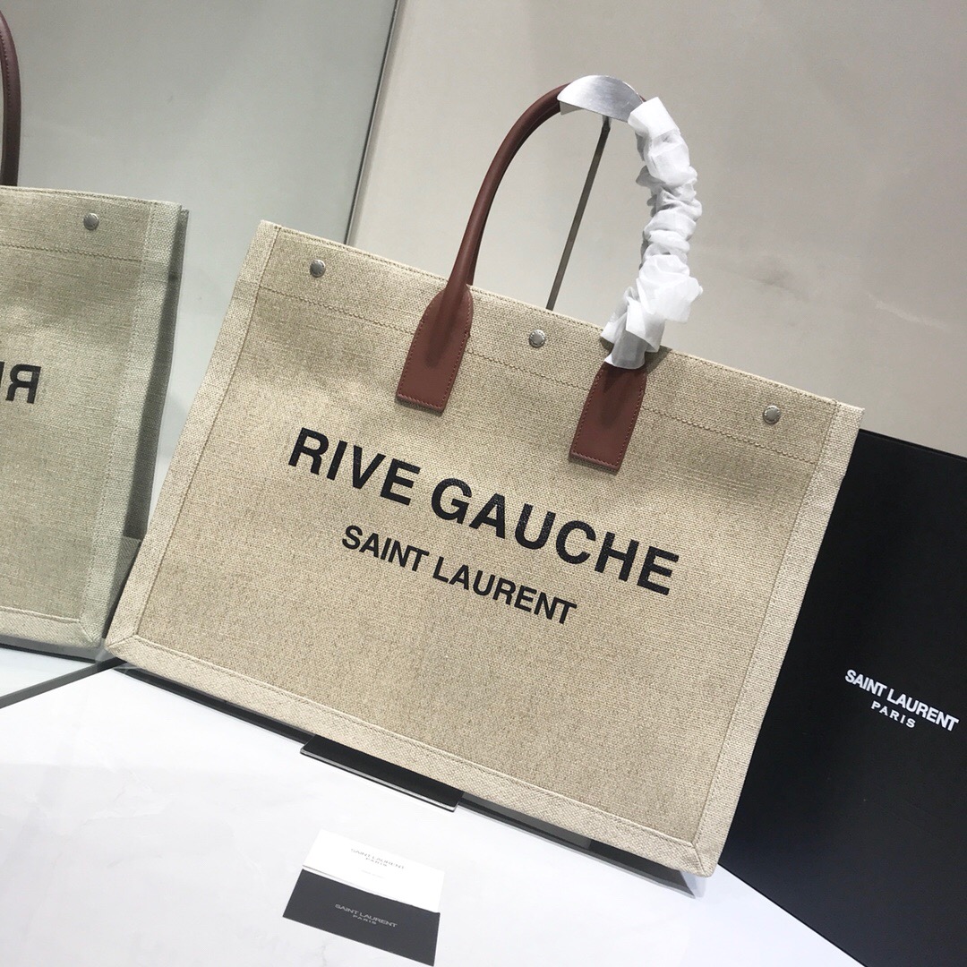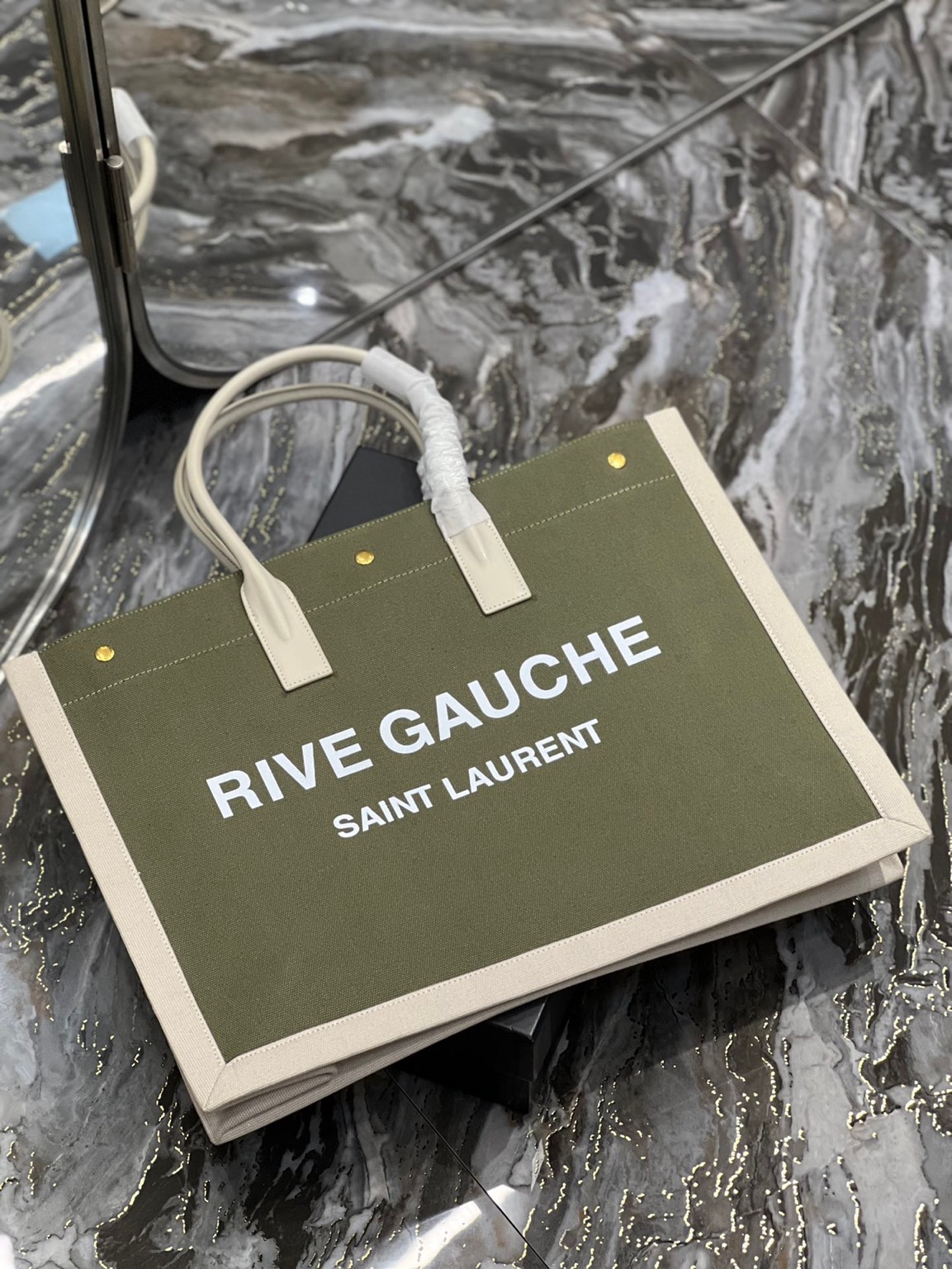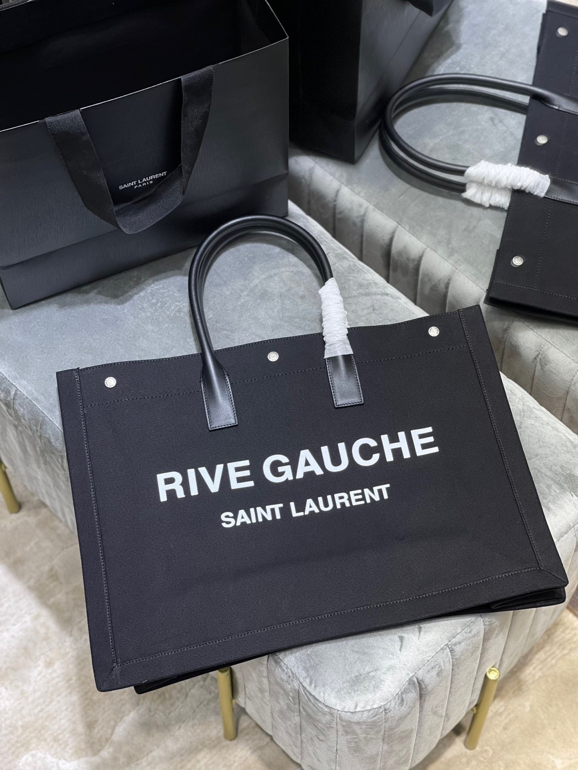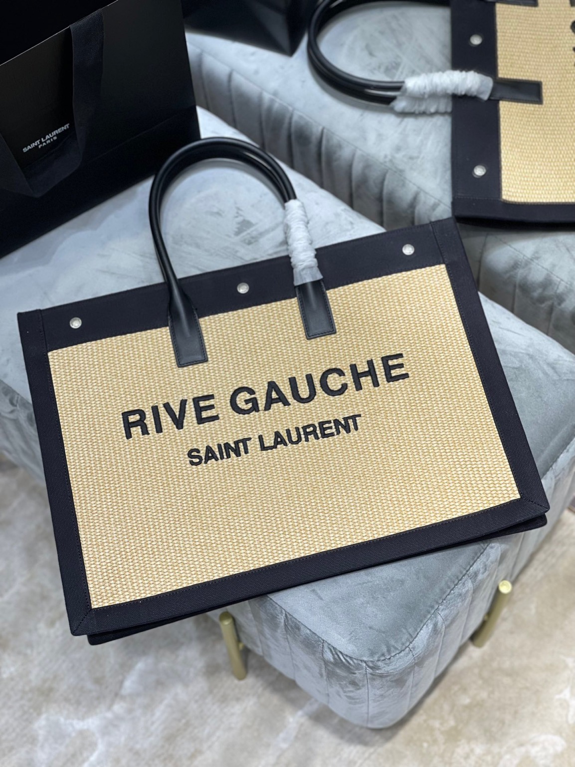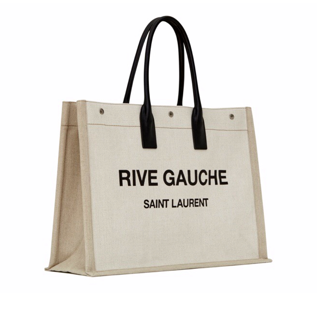 The ‘Shopper’ tote by ST *AURENT is the perfect companion for your everyday tasks or weekend excursions to the market. Crafted from sturdy canvas, it boasts elegant leather top handles that beautifully complement the ‘Rive Gauche’ lettering, a nod to the brand’s original name in the 1960s. Inside, you’ll find a roomy interior with a convenient zip pocket to keep your bills and coins safe and secure.