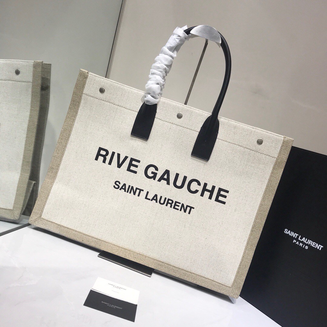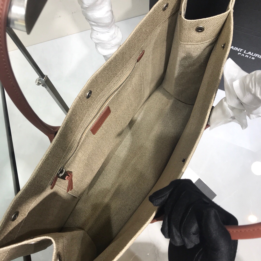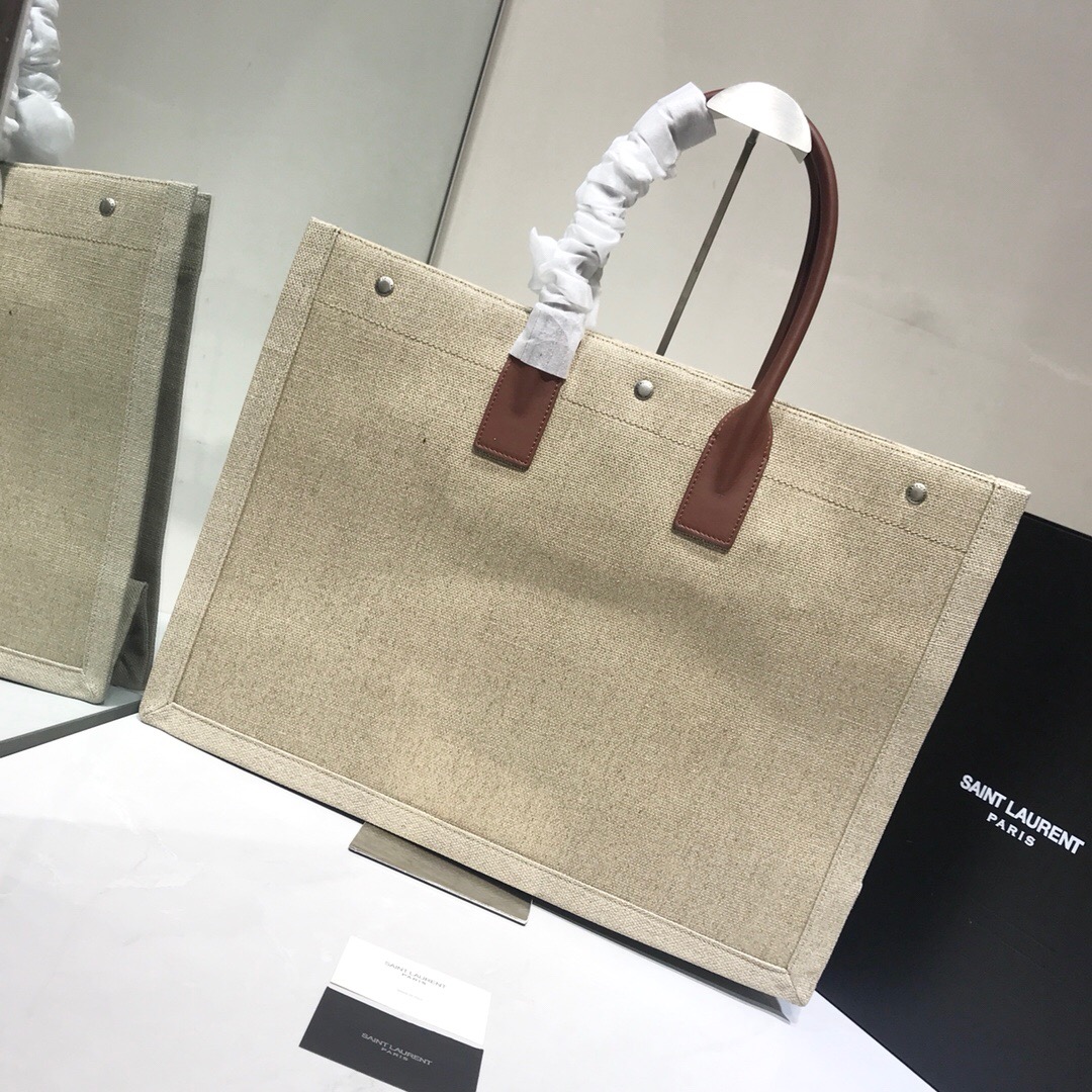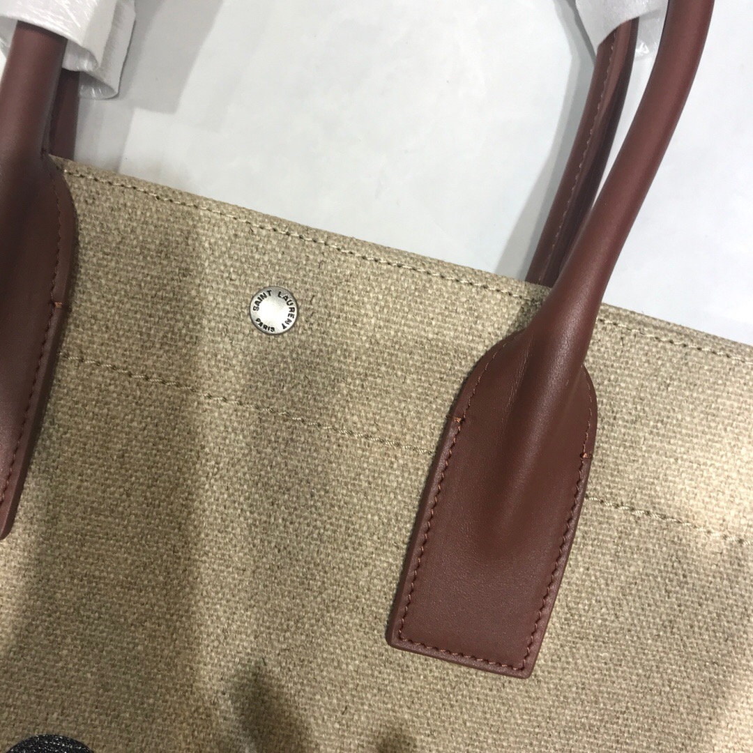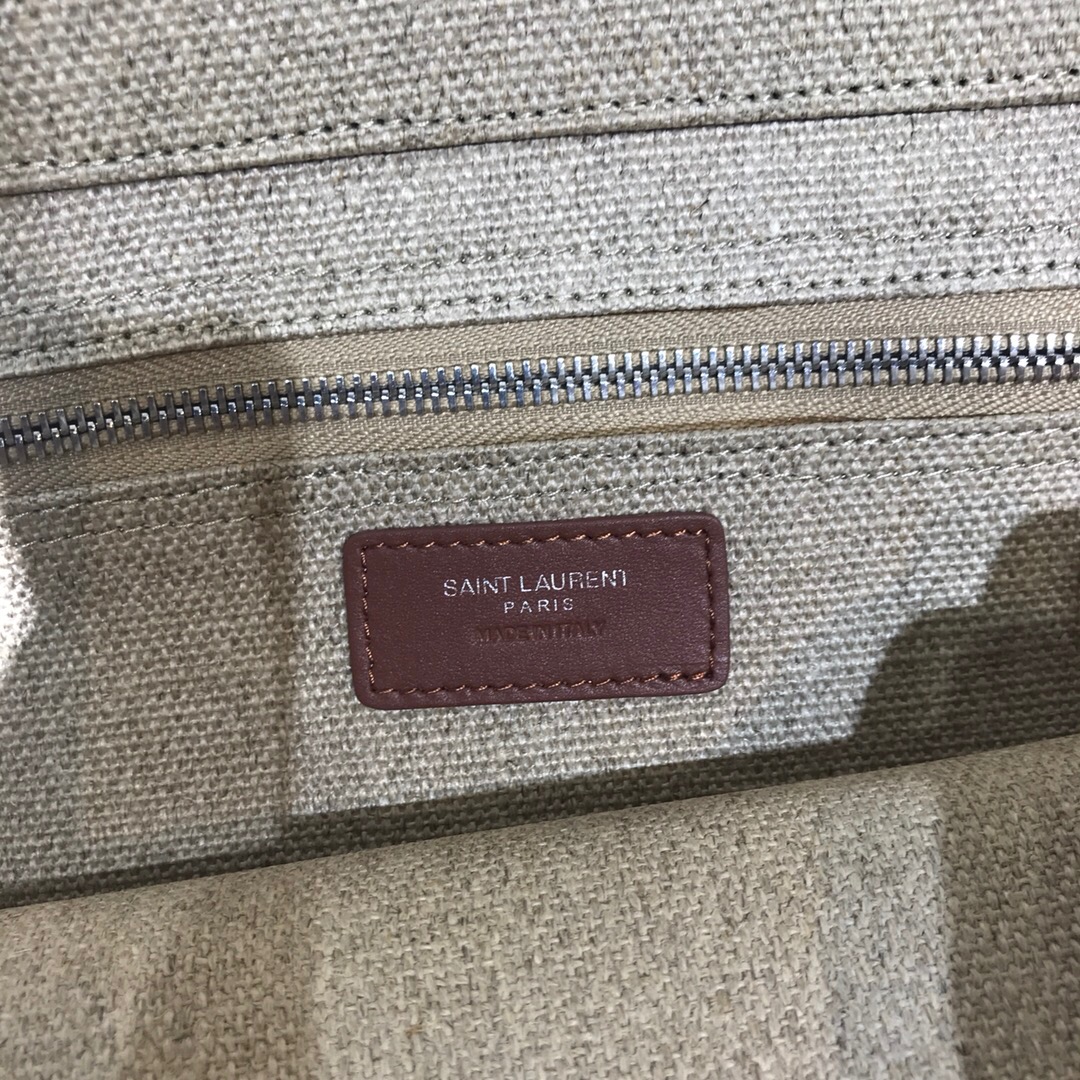 ST *AURENT Tote Bag with flat handles, fastened with three Saint Laurent-engraved snap buttons and featuring an inside zippered pocket.