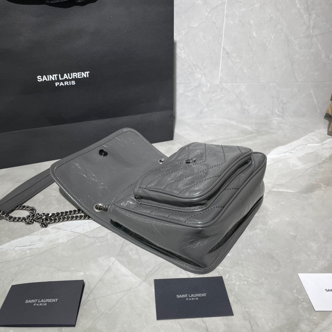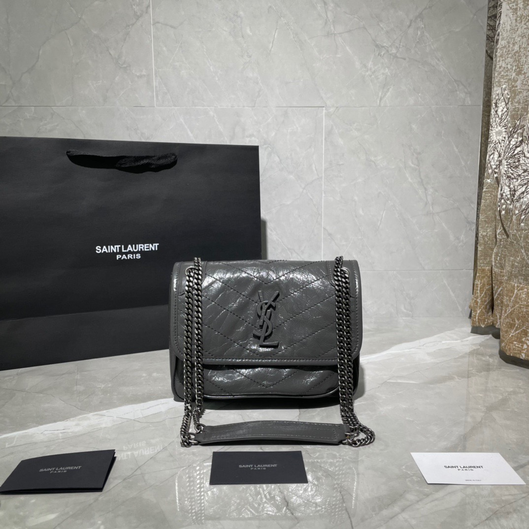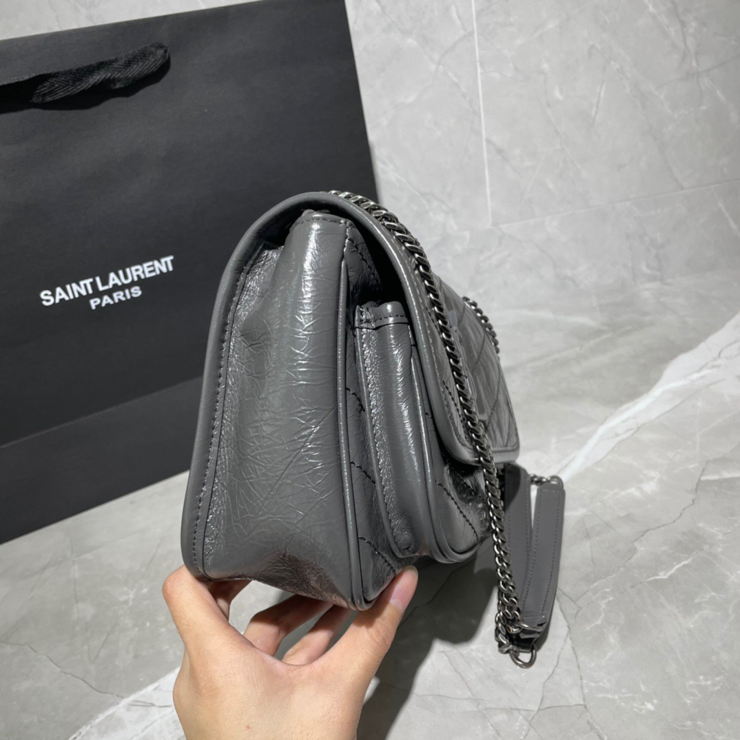 This bag is not just your ordinary shoulder bag; it is an embodiment of practicality, elegance, and modernity. The addition of a delicate chain gives it a pleasing final touch. The iconic YSL logo at the center adds a touch of class, making it truly exceptional. The crinkled leather is captivating, offering a luxurious texture for an unmatched experience. Designed with a relaxed shape and a rectangular body, this ST *AURENT monogram bag features a quilted effect and a fold-over top with a magnetic closure. It is equipped with a front logo plaque, a spacious main compartment, an internal zipped pocket, a convenient front slip pocket, and a leather convertible shoulder strap.