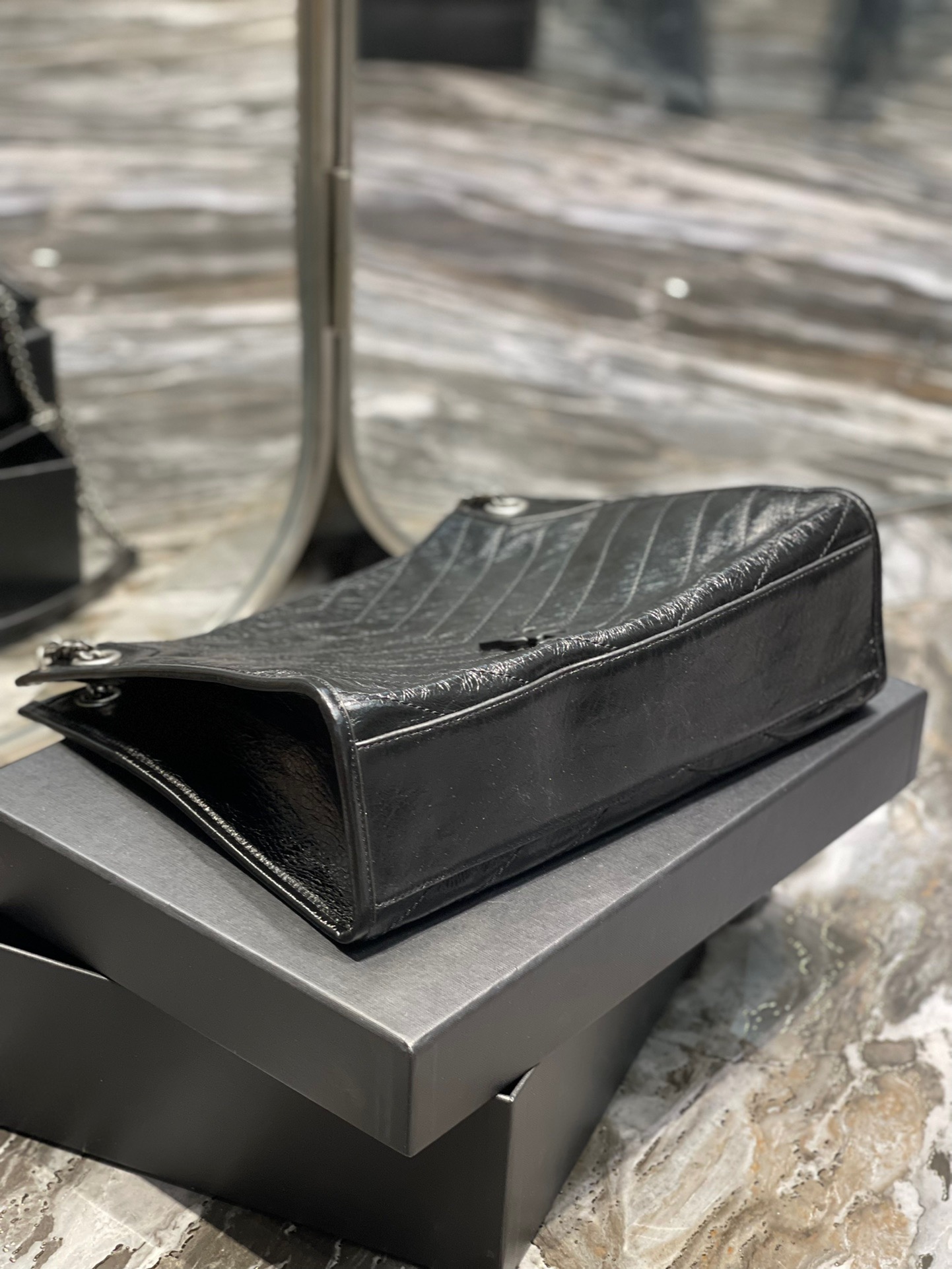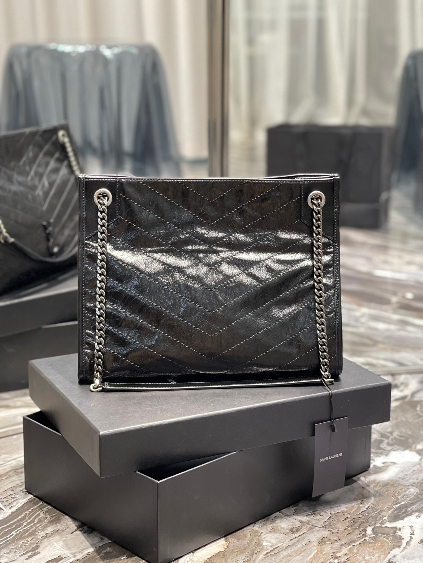 Introducing the Niki Bag, a stunningly elegant and spacious handbag boasting a hint of vintage charm. This exquisite piece is meticulously crafted using the finest materials, including the iconic Monogramme design and Chevron Quilting. However, what truly sets it apart is the use of crumpled calfskin leather, reminiscent of the beautifully aged hide of yesteryears. This intentionally worn appearance adds a touch of nostalgia and enhances its timeless allure.