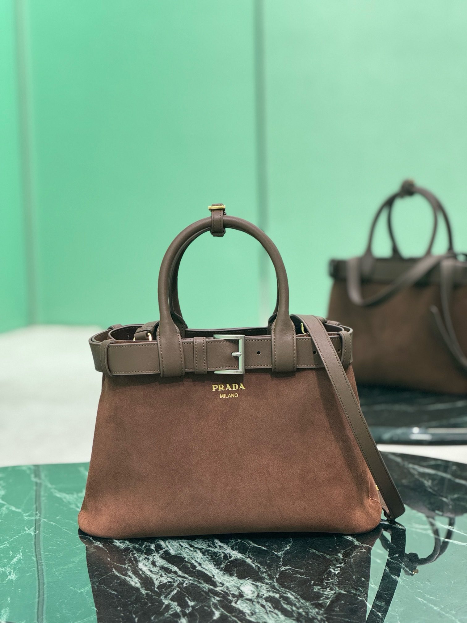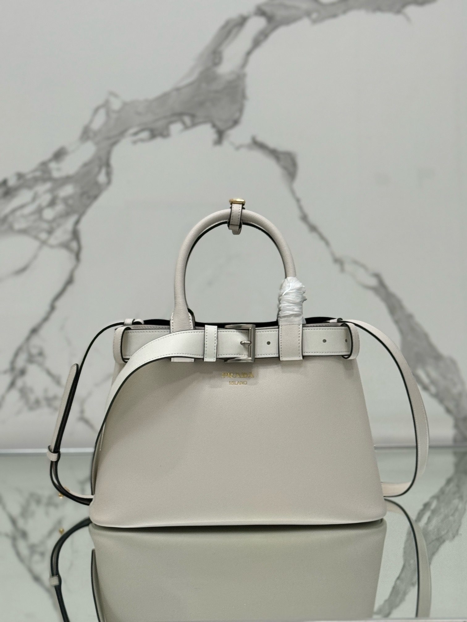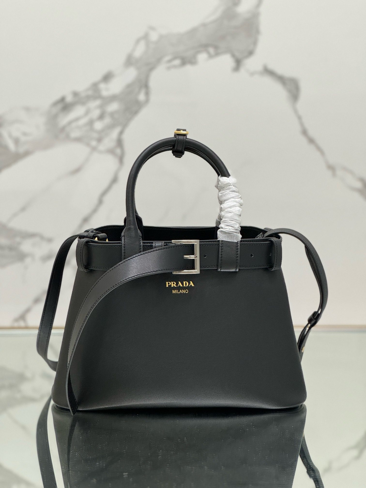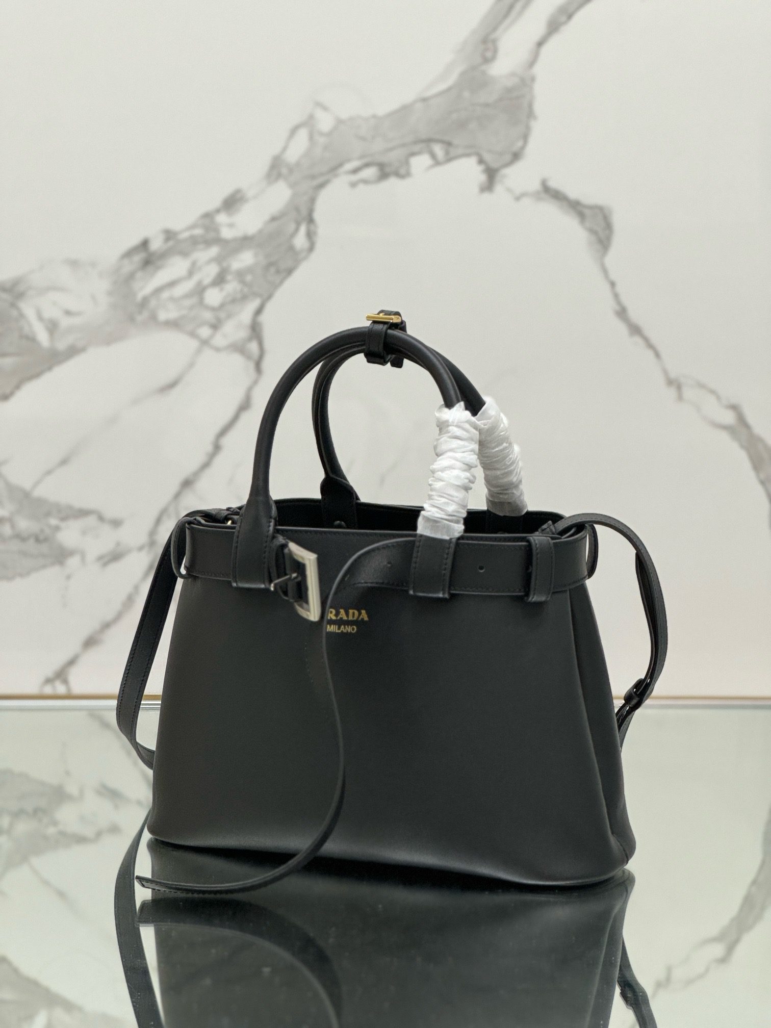 Sleek, structured, and undeniably Pr*da — the Buckle Small Leather Handbag captures the brand’s signature balance of minimalist elegance and refined detail. Crafted in smooth leather with a buttery-soft nappa interior, this compact piece is a masterclass in functional luxury.