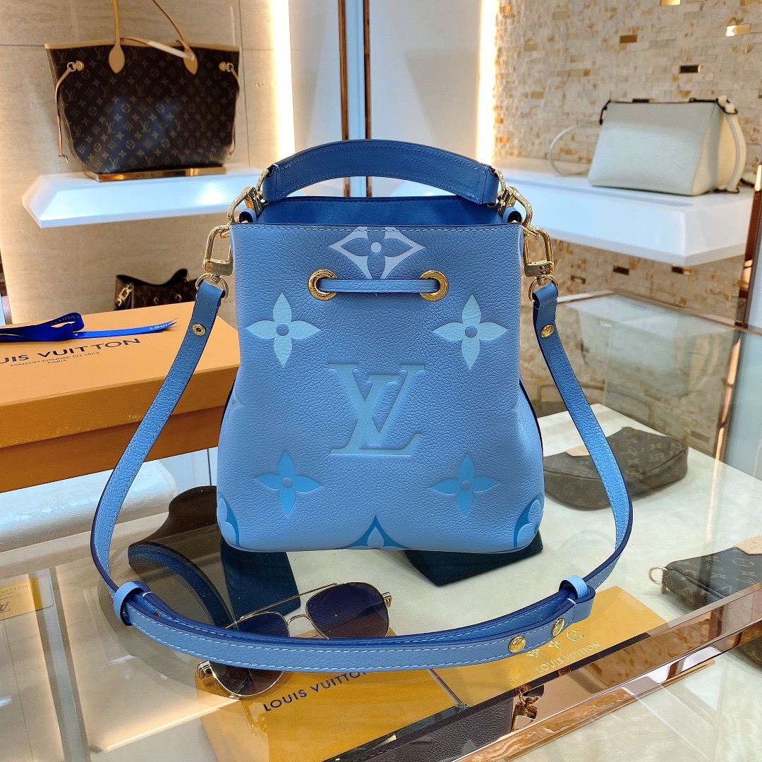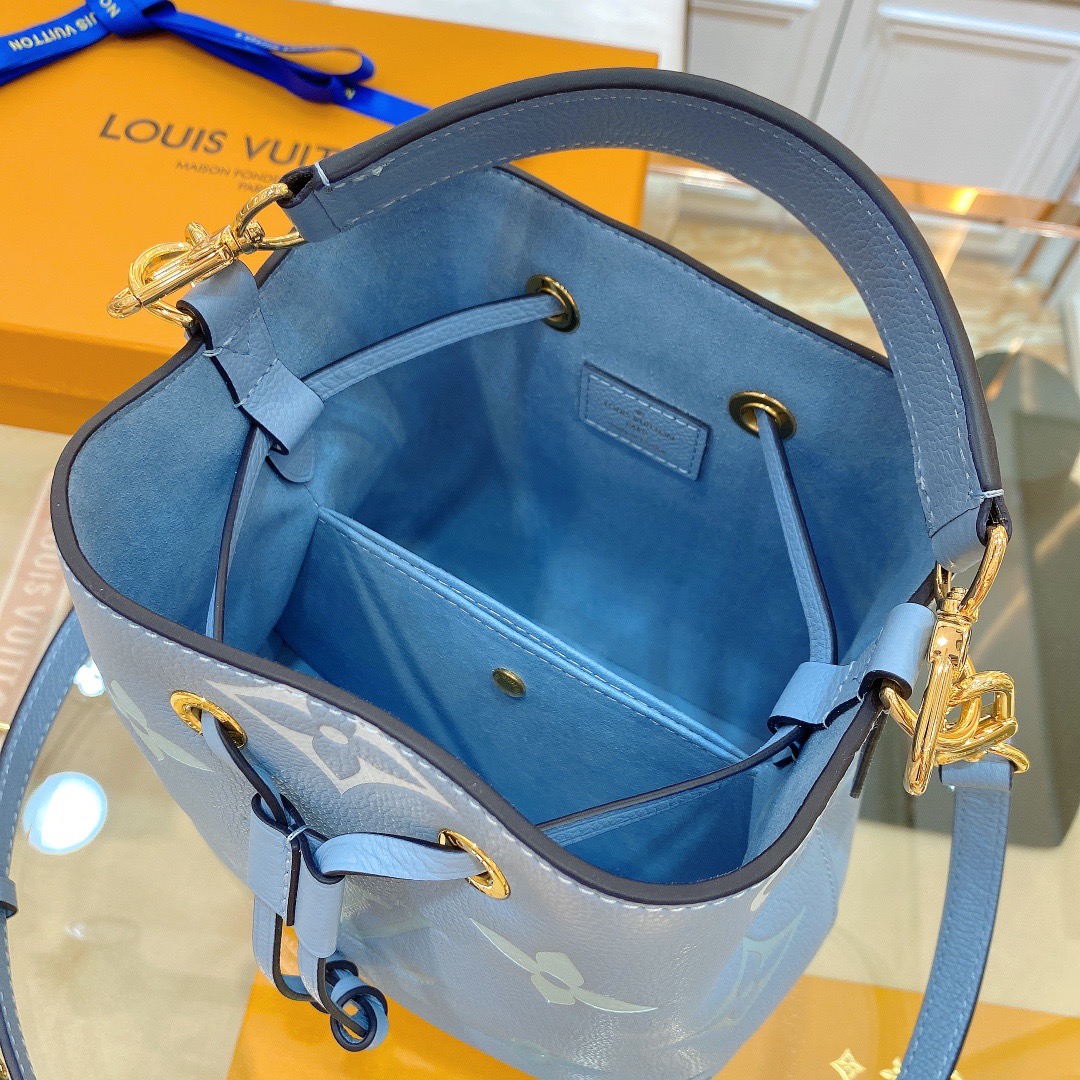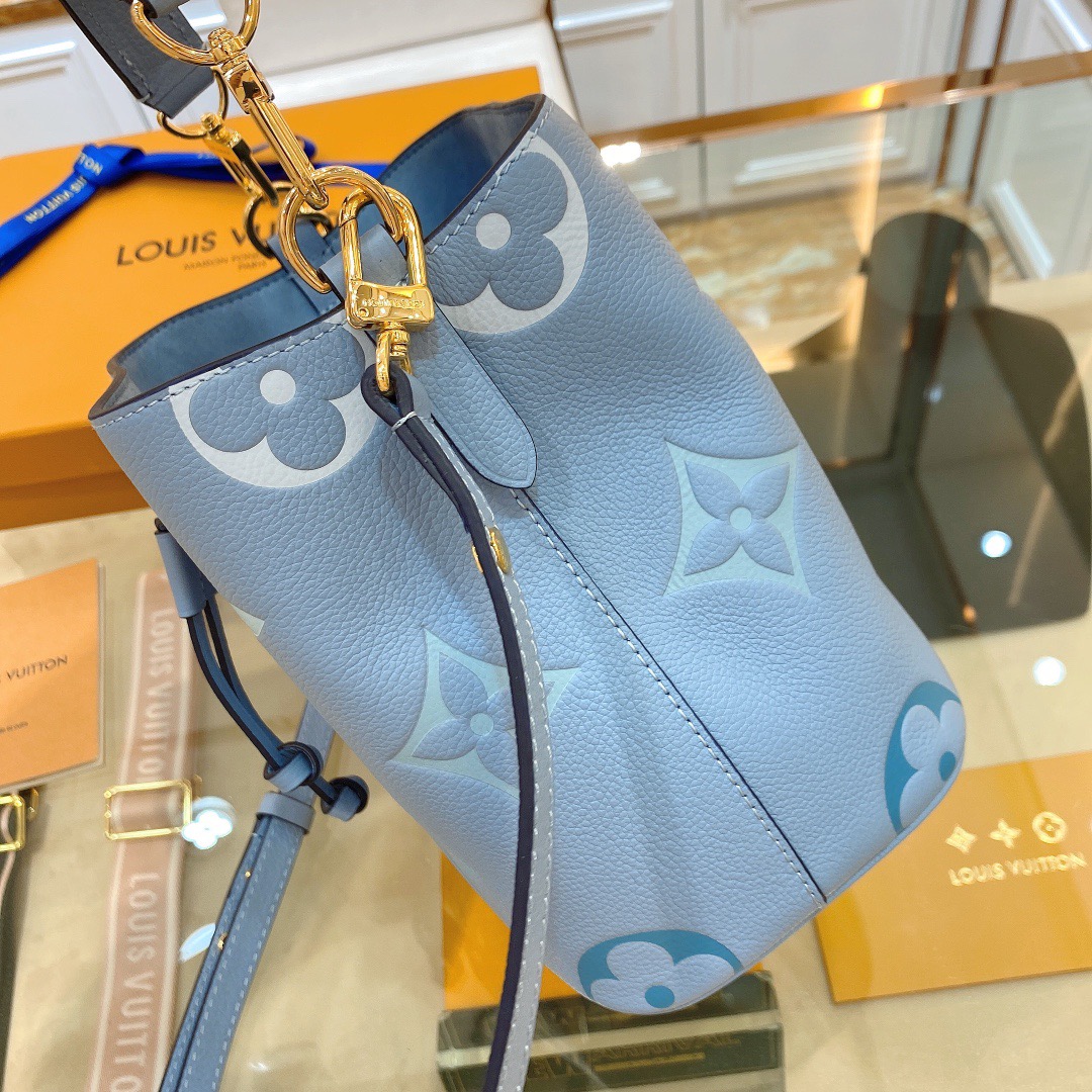 Crafted from luxurious Monogram Empreinte leather in a stunning two-color design, this NéoNoé BB bucket bag exudes a whimsical festival vibe with its enchanting gradient pastel colorway. The iconic Monogram Giant motif adds a touch of playfulness to this trendy accessory. Whether you prefer hand or elbow carry, the detachable top handle offers versatile styling options. Additionally, the adjustable strap allows for comfortable hand carry or elegant over-the-shoulder wear.