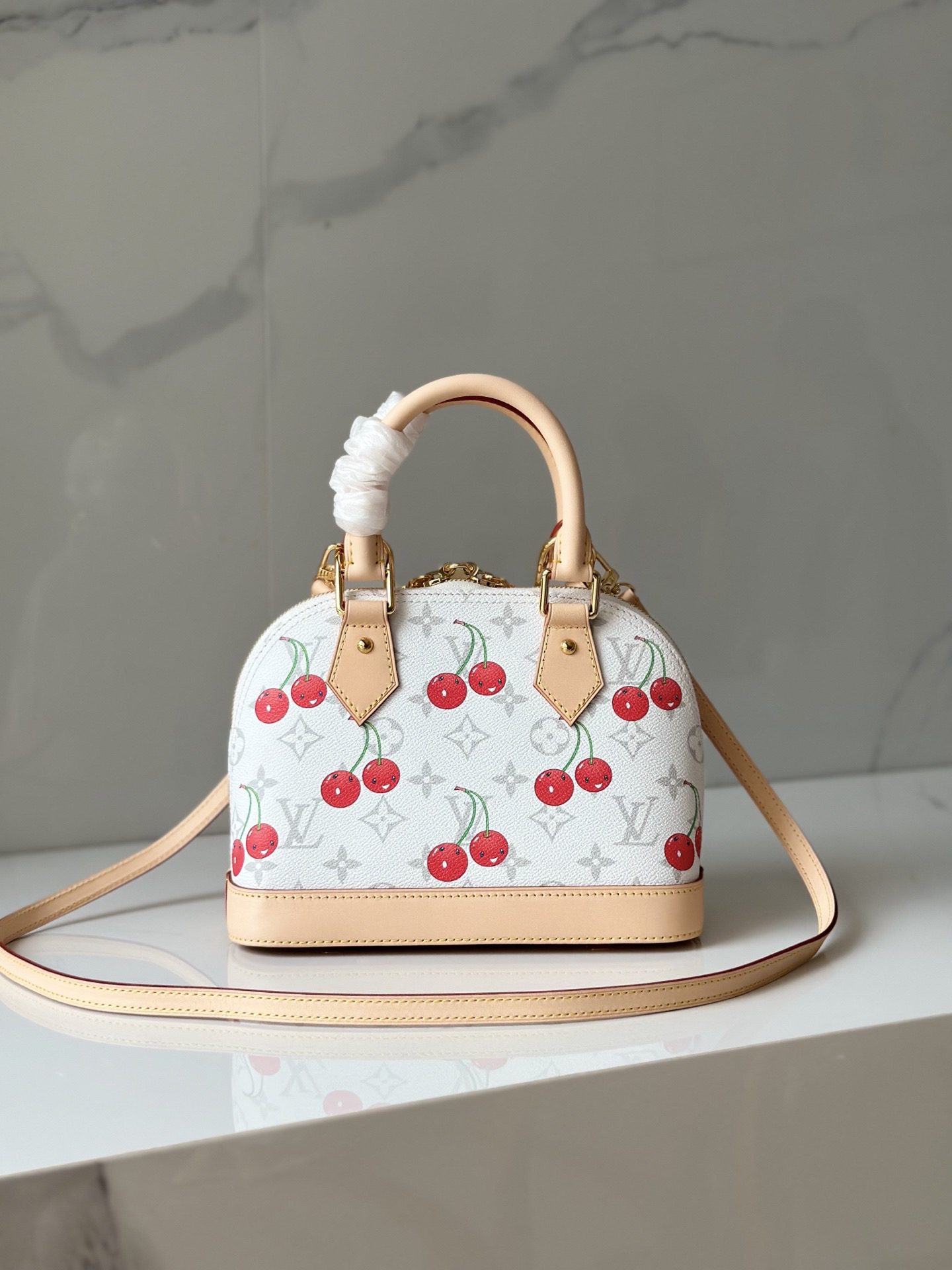 Crafted with natural leather accents and finished with polished gold-tone hardware, it features structured Toron top handles and a charming bow-shaped keybell that adds just the right amount of flirt. Compact yet attention-commanding, the Alma BB is a true collectible—full of joy, color, and unmistakable LV heritage.