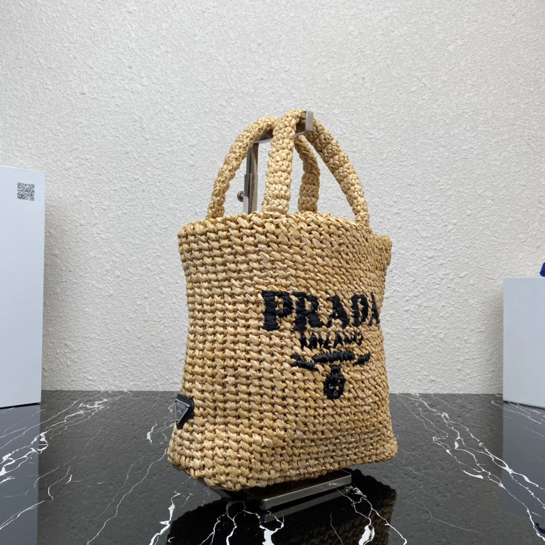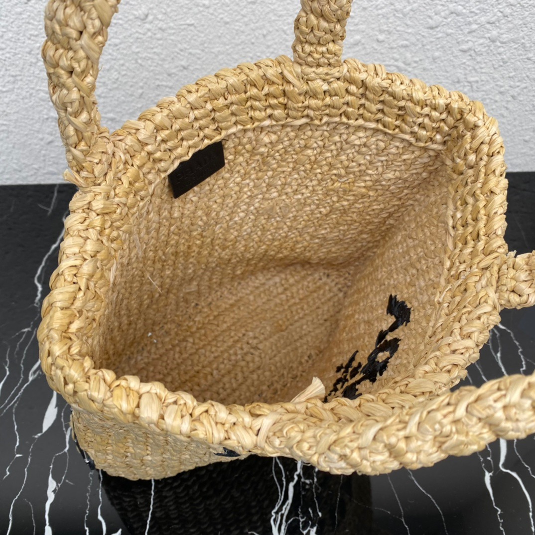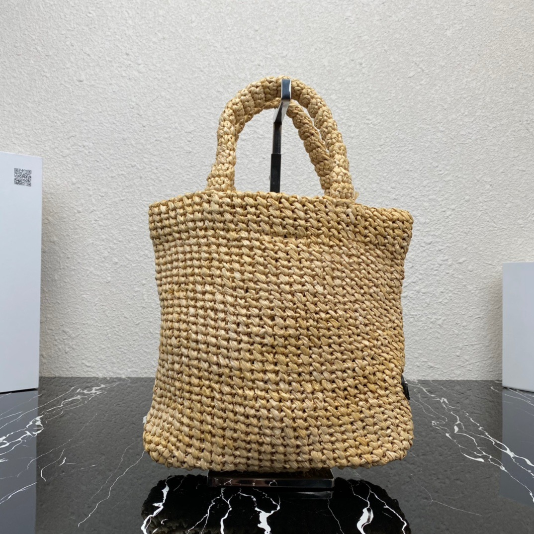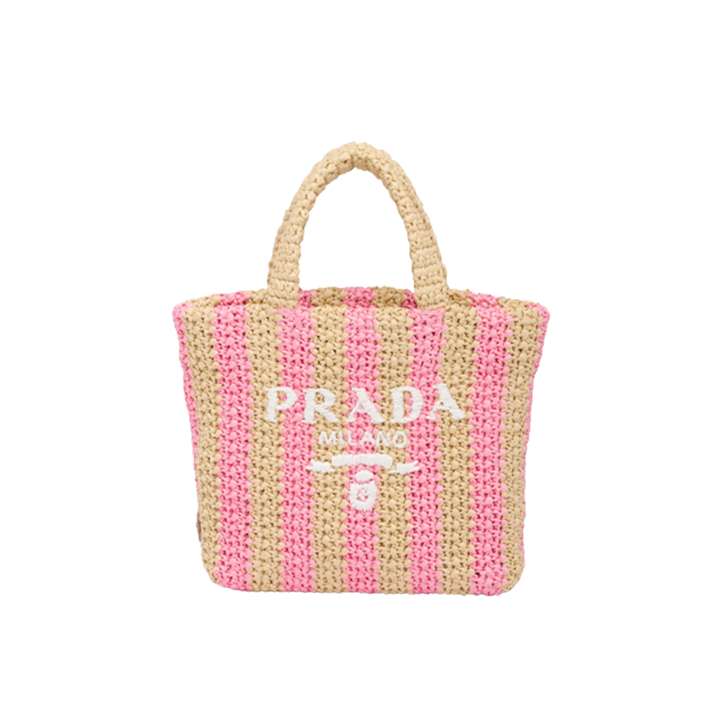 This exquisite tote bag has a deconstructed design made of a light, natural material with a summery mood, raffia-effect yarn. Embroidered lettering logo decorates the front, and the emblematic triangle in enameled metal is the perfect finishing touch to the side.